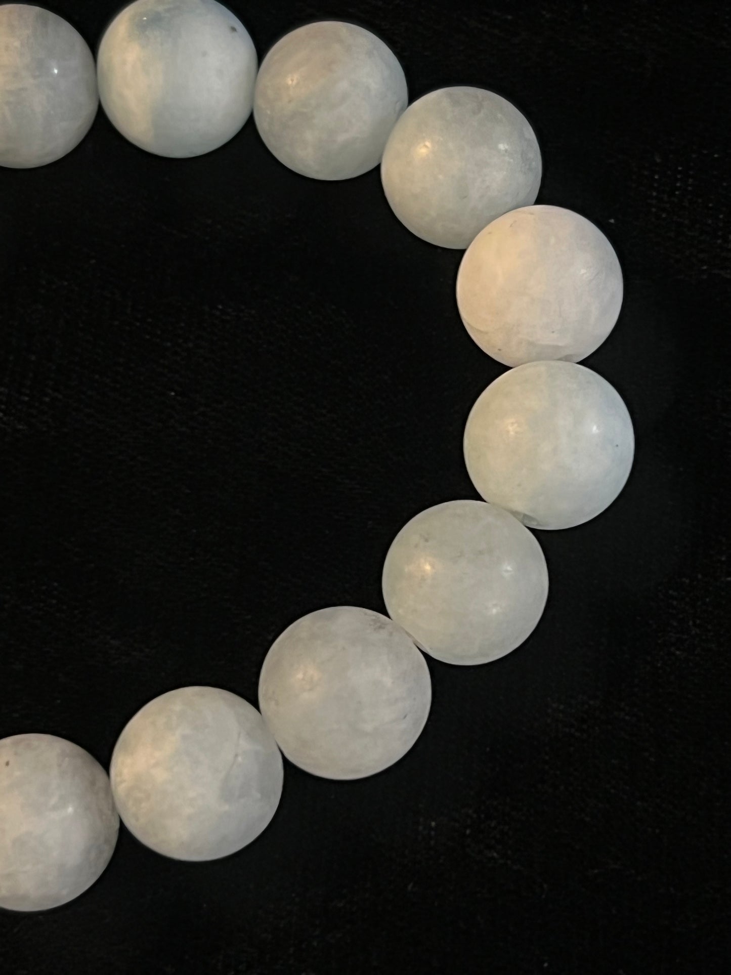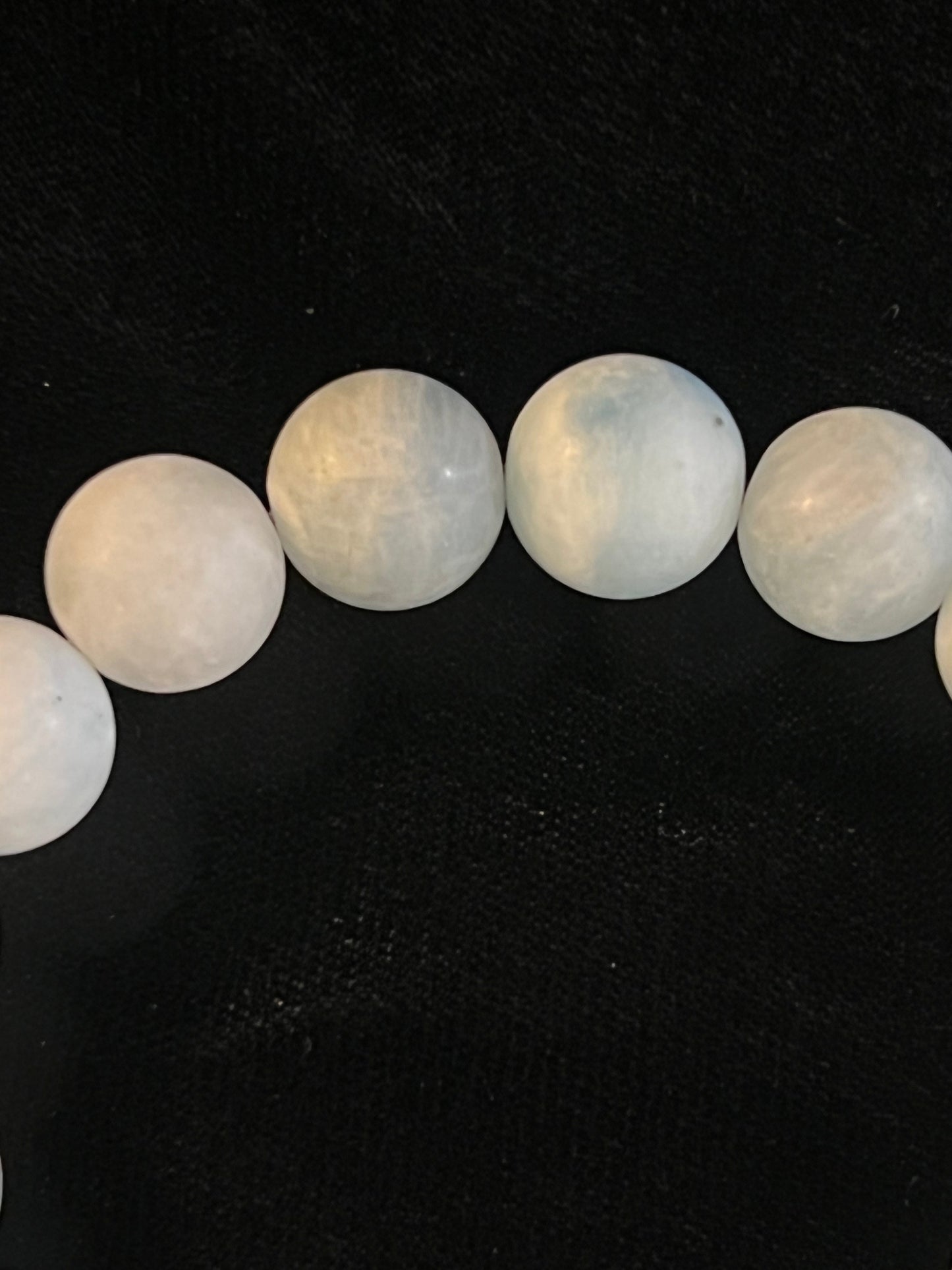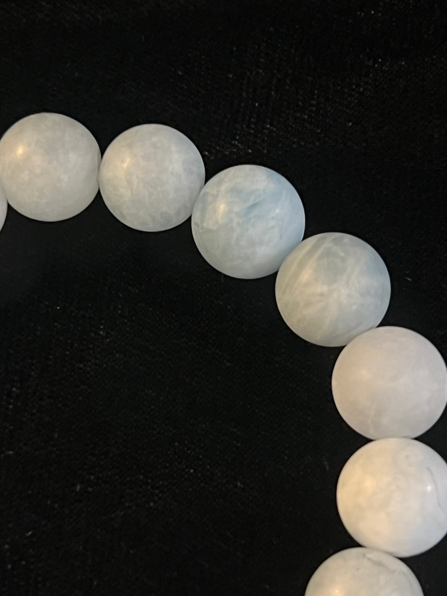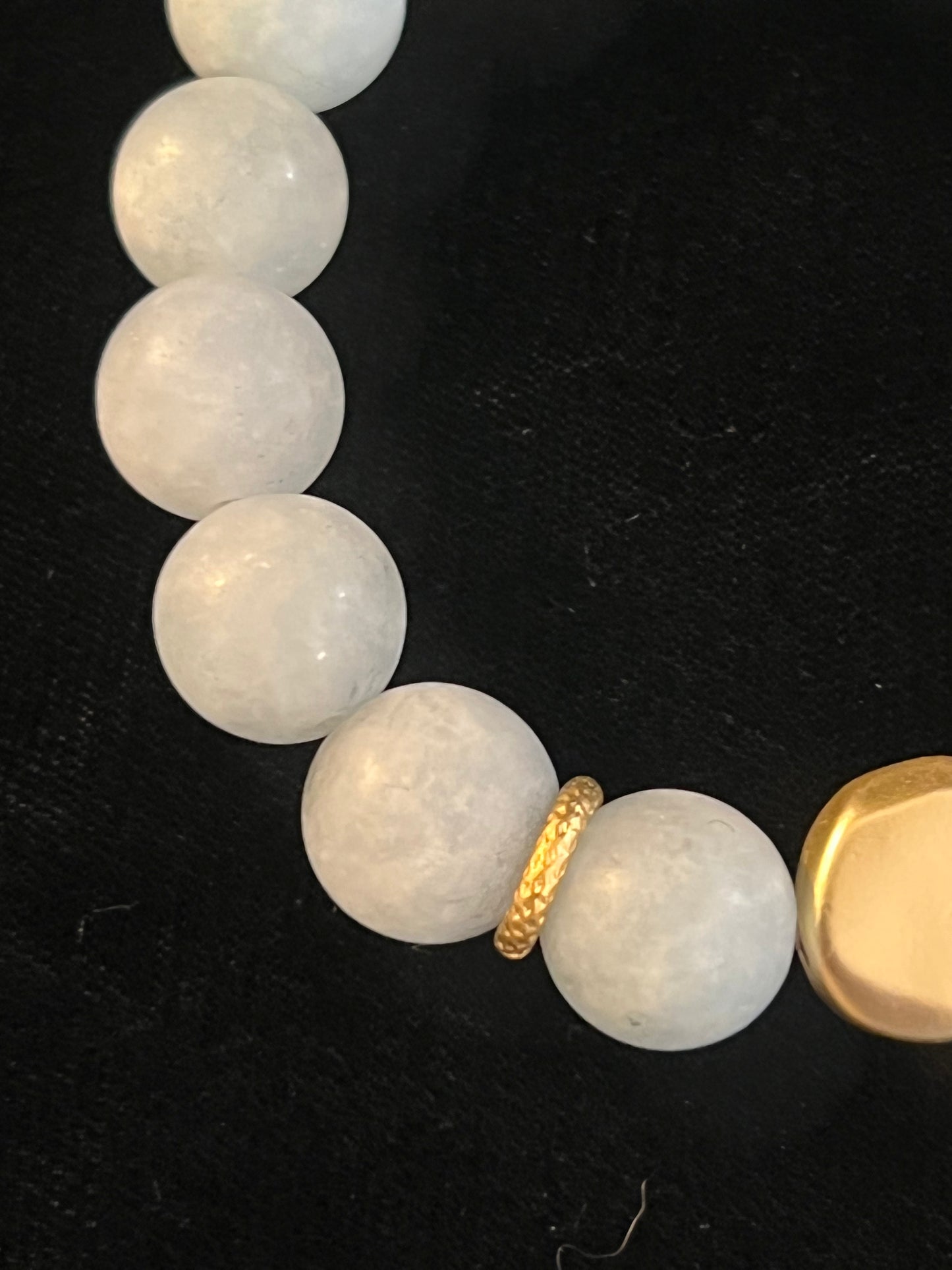 This matte aqua marine 12 mm bracelet features a matte golden nugget charm with textured golden loops on either side. These stones are natural, not plastic! Bracelet stretches - so one size fits most. This bracelet is one of a kind - the bracelet you see will be the bracelet you receive!