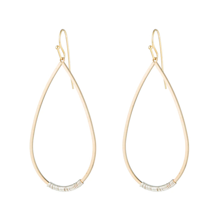 Matte Gold Silver Wire Wrapped Teardrop Earrings