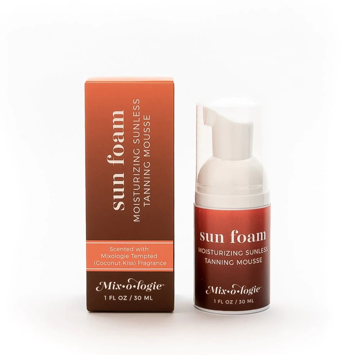 Introducing SunFoam, a MOISTURIZING tanning mousse that will leave your skin with a hydrated, sun-kissed look. Formulated with Hyaluronic Acid, Aloe, and Green Purslane Extract to sooth, protect, and moisturize your skin. Why the focus on moisturizers? Because sunless tans look better and last longer when your skin is hydrated. Since it's scented with Mixologie's Tempted (coconut kiss) fragrance, it smells AMAZING.
