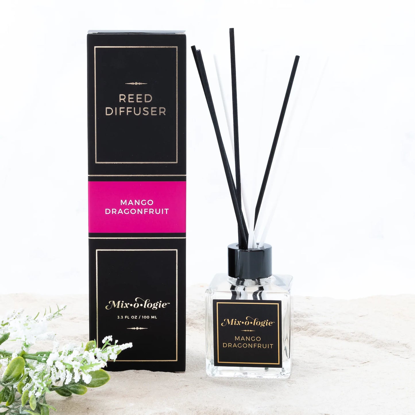 Establish your bedroom vibe with the NEW Mix-o-logie Mango Dragonfruit Reed Diffuser!
