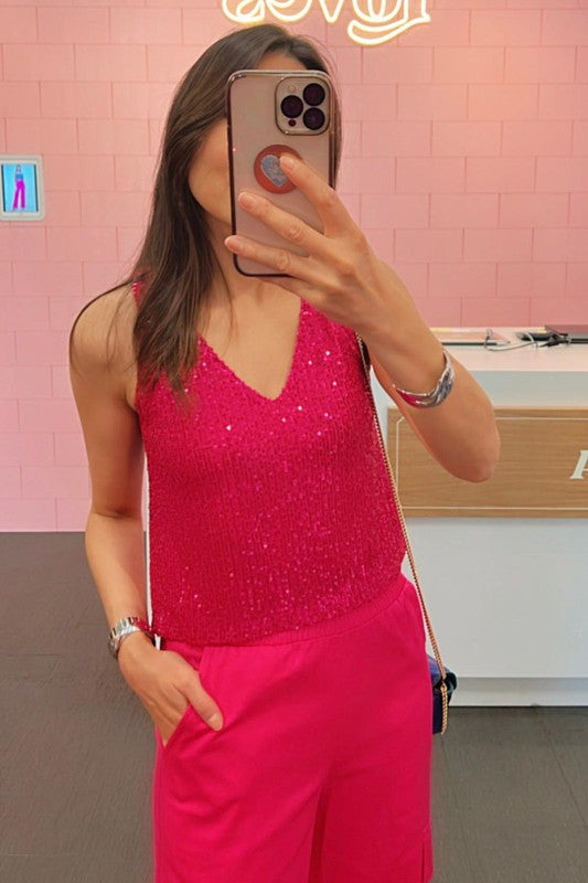 If She Loves Shining Star Sequin Top in FUCHSIA!