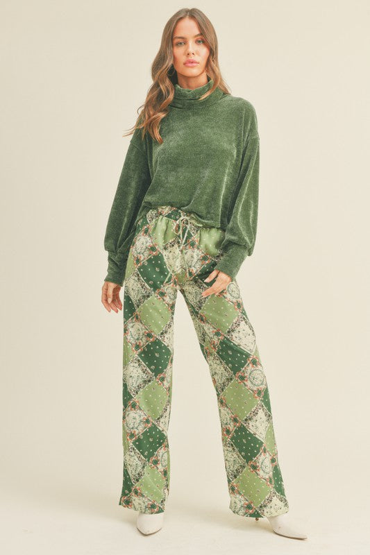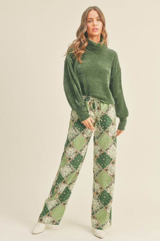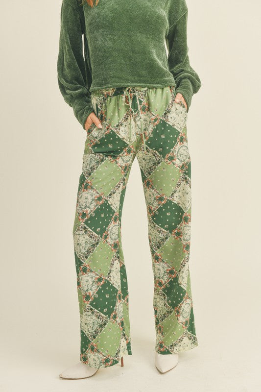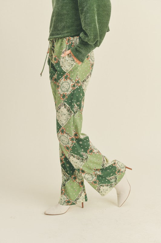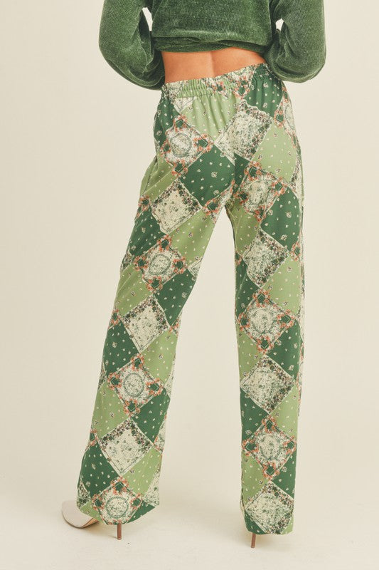 The NEW If She Loves GREEN Mosaic Print Pants are mid-rise, crafted from breathable fabric with a stylish green mosaic print.