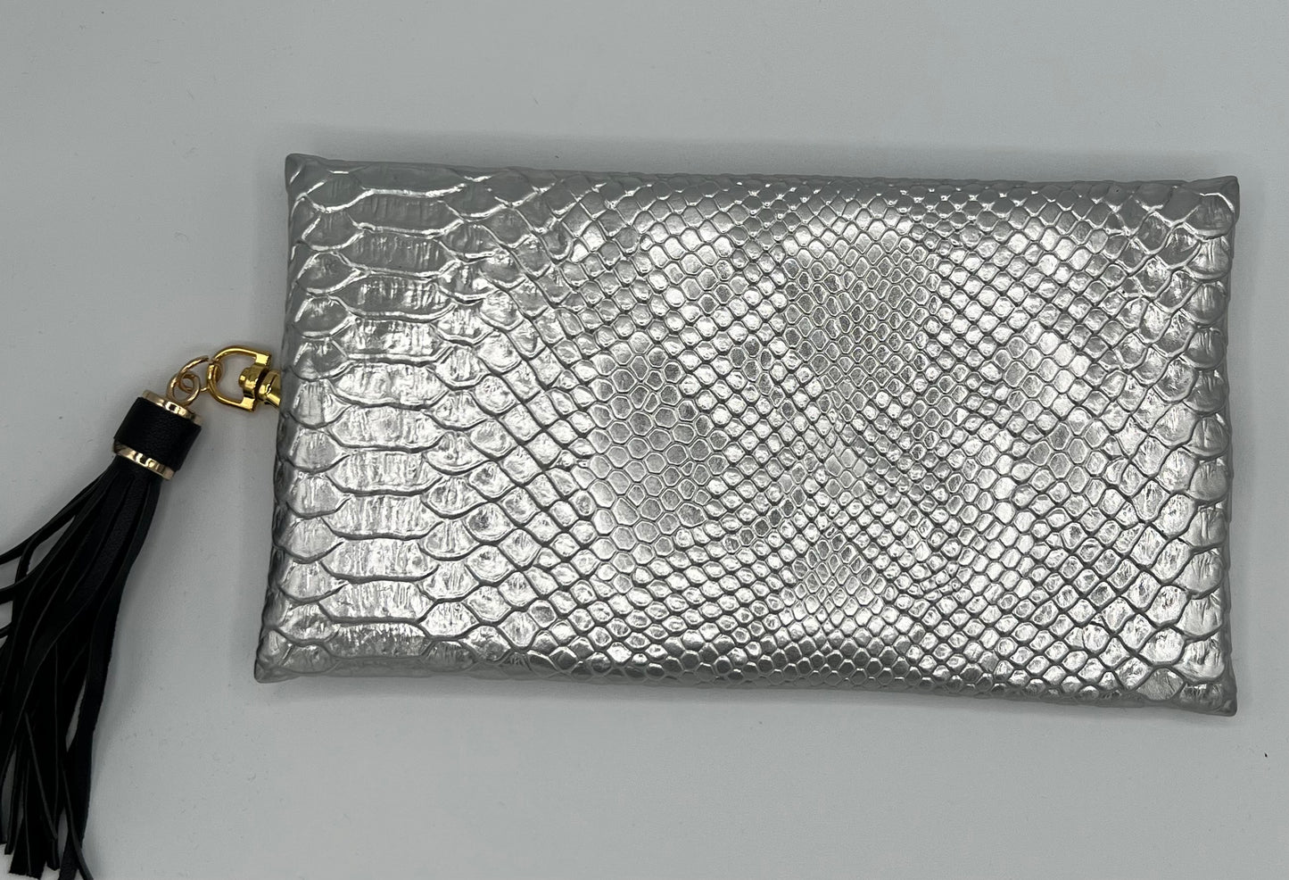 Our designers ensure that each handcrafted Silver Serpent bag comes with a onyx Zipper and coordinating tassel.