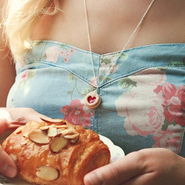 Is food the language of love? If so, this adorable Scented Shortcake Heart Cookie Necklace speaks volumes! Forget the symbolism of a single red rose, this tiny cookie charm expresses romantic intention perfectly. Sweetened with a generous dusting of icing sugar, the sweet jam-filled center has been sculpted to form a beautiful heart – ideal when words simply aren't enough!
