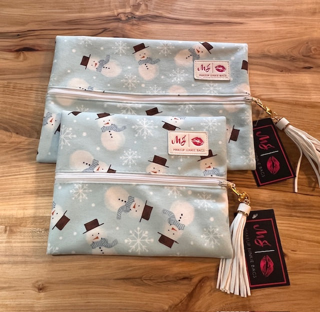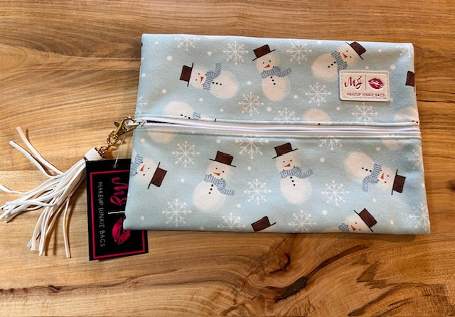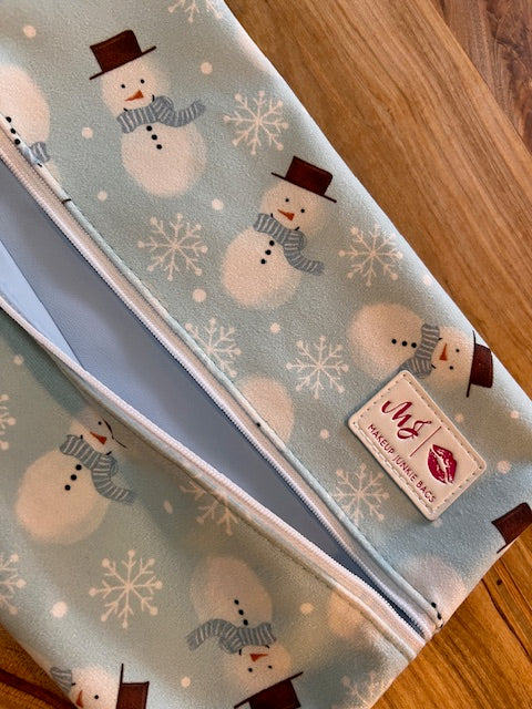 NEW ~ MAKEUP JUNKIE ~ Light Blue SNOWMAN & SNOWFLAKES - Limited Edition Bag ~ SMALL and MEDIUM Available!