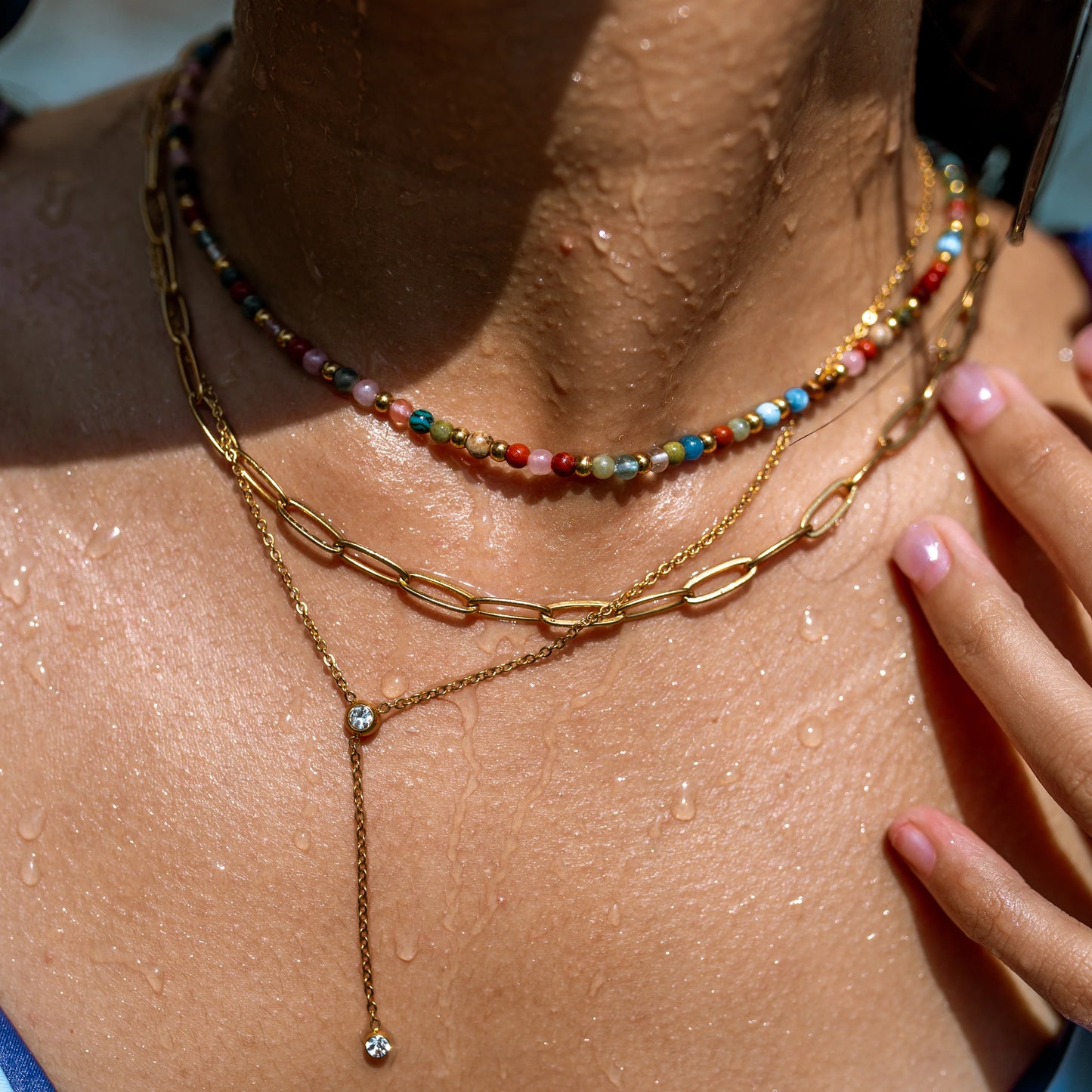 ALCO Jewelry is water resistant! THIS is what we have been waiting for! Our water resistant pieces are made with adventure in mind. However, to make your pieces last as long as possible, we recommend rinsing them with fresh water and patting dry after exposing them to salt water, sweat, or chlorine. This elixir necklace features: