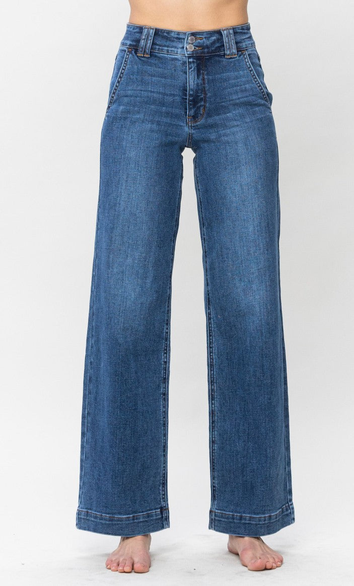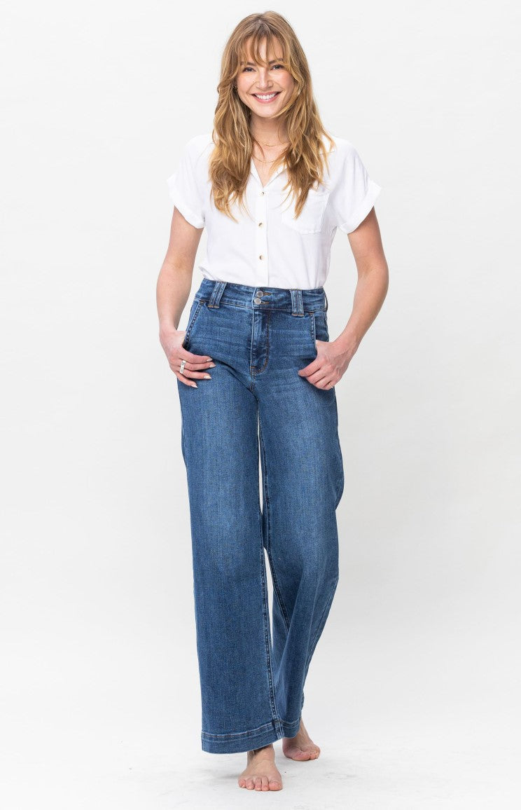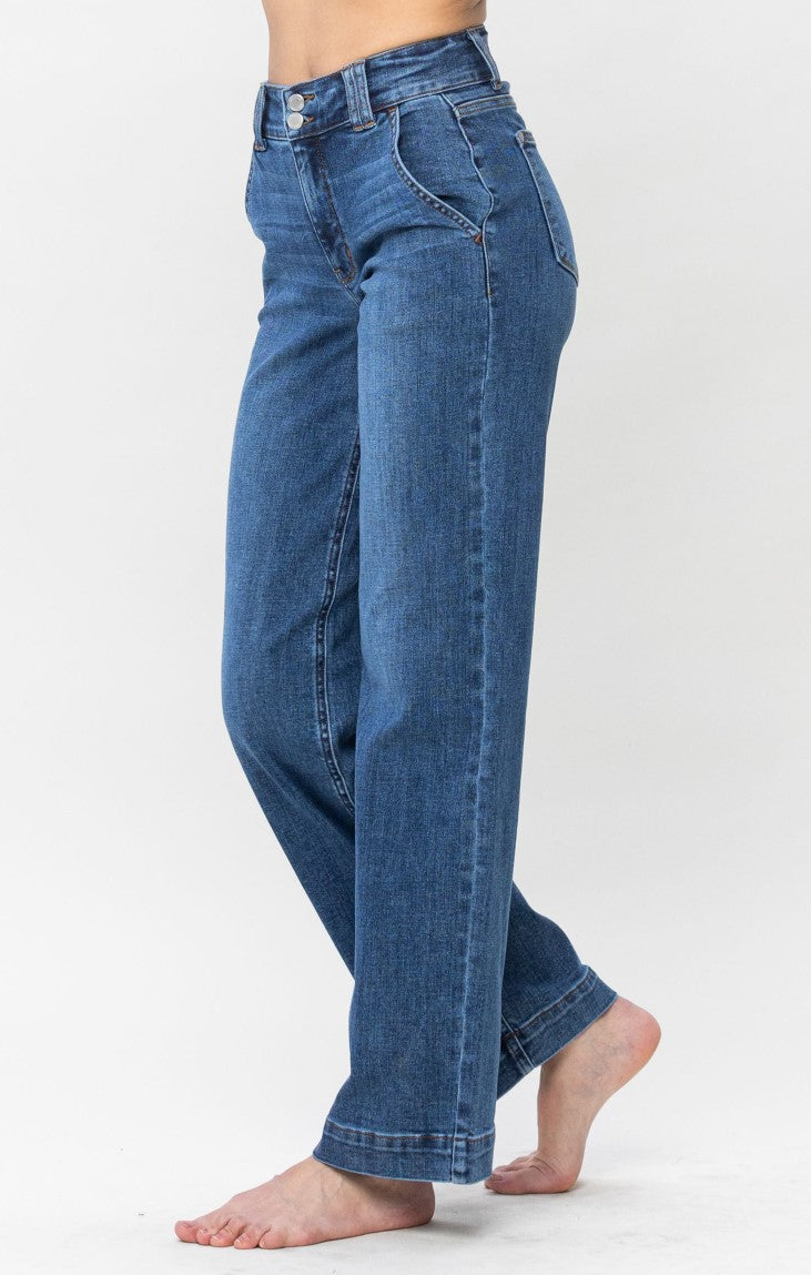 BESTSELLER! Judy Blue High Rise Double Button Wide Leg Jeans ~ Style 82558 ~ Available in Sizes 3-13!