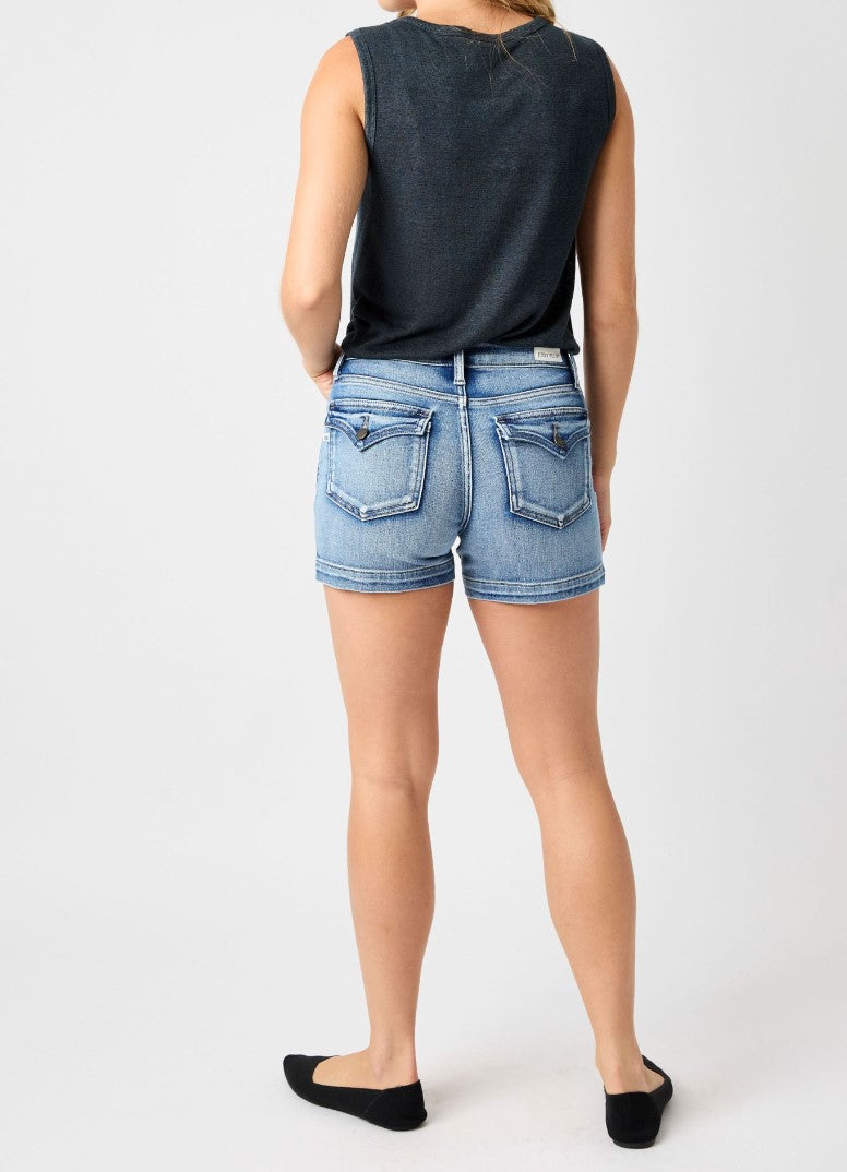 Judy Blue Mid-Rise Heavy Contrast Faux Flap Pocket Shorts!