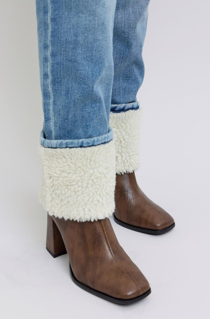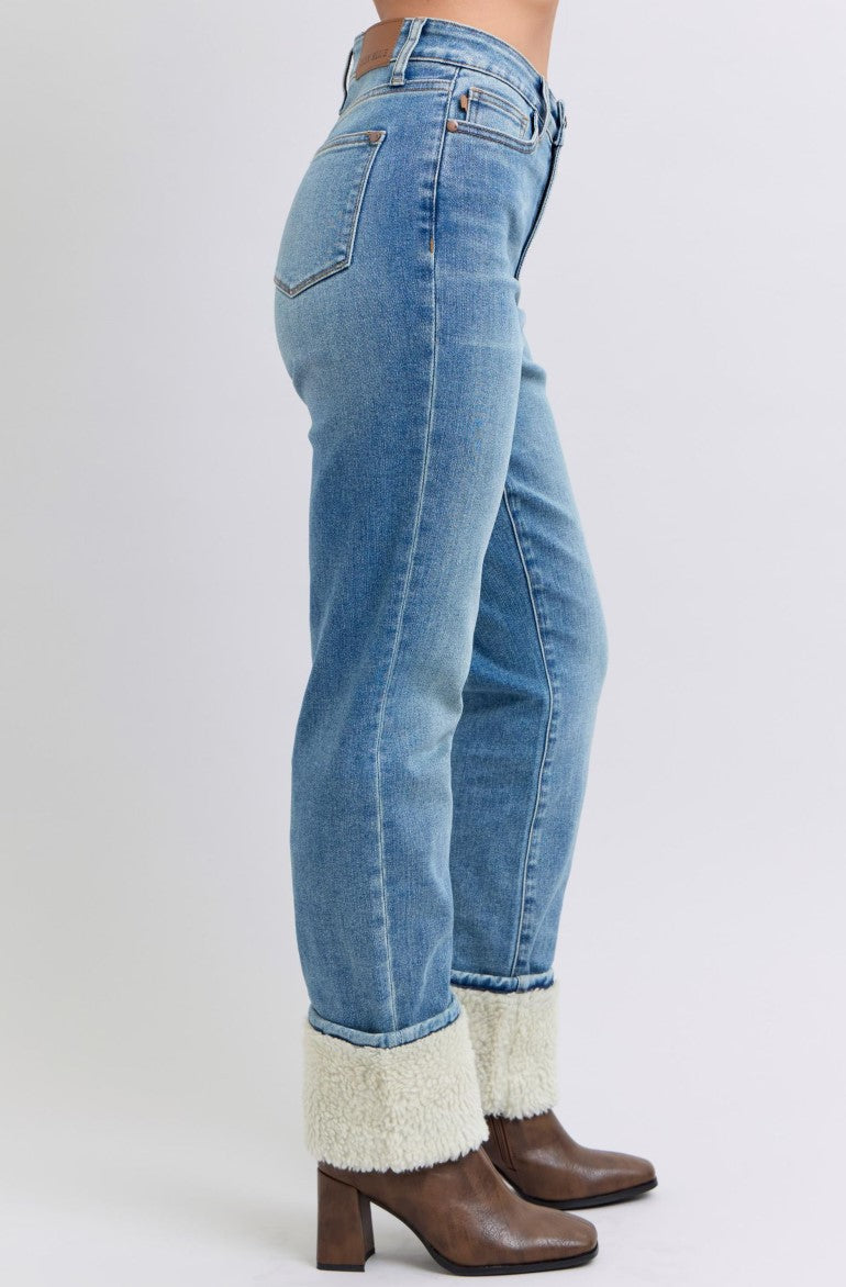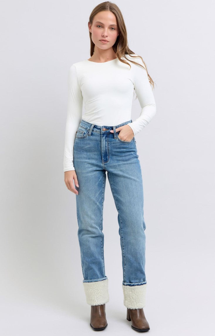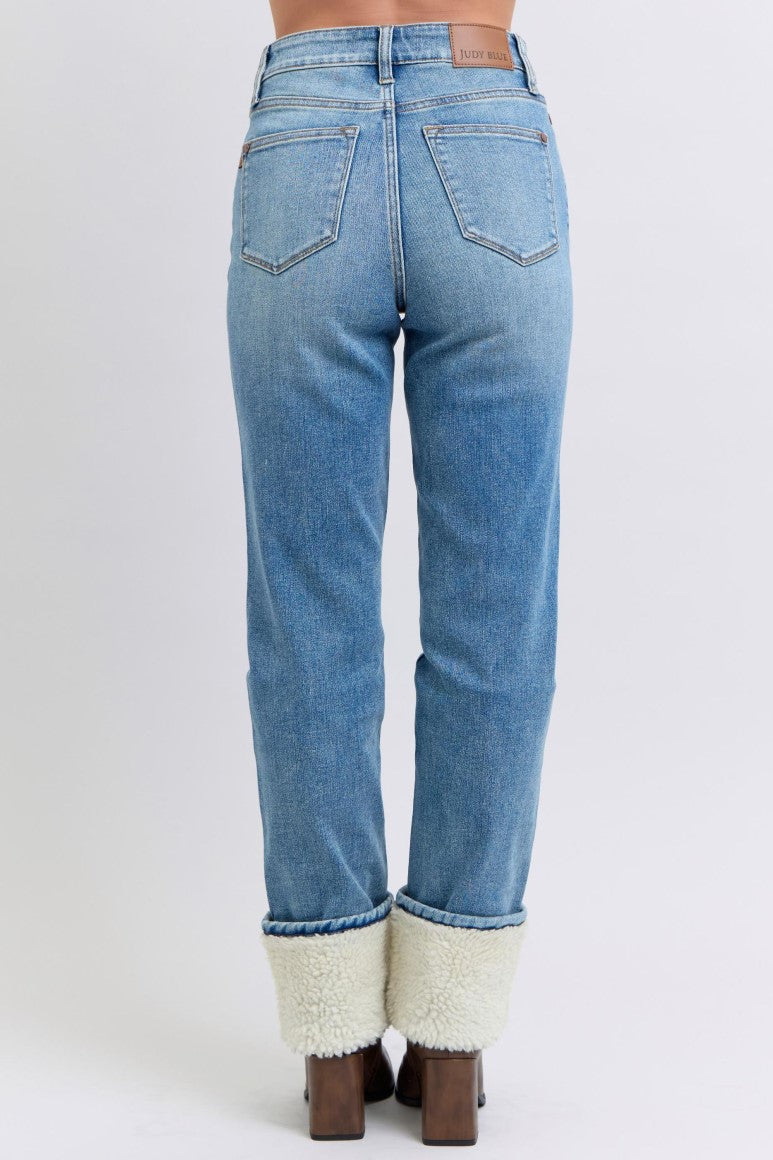 Judy Blue ~ High Waisted Shearling Cuff Straight Jeans ~ Medium Wash ~ Available in CURVY!