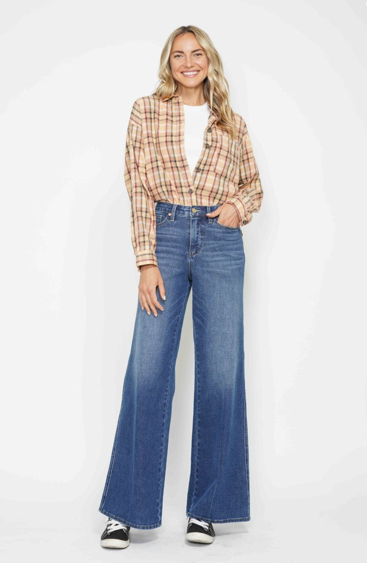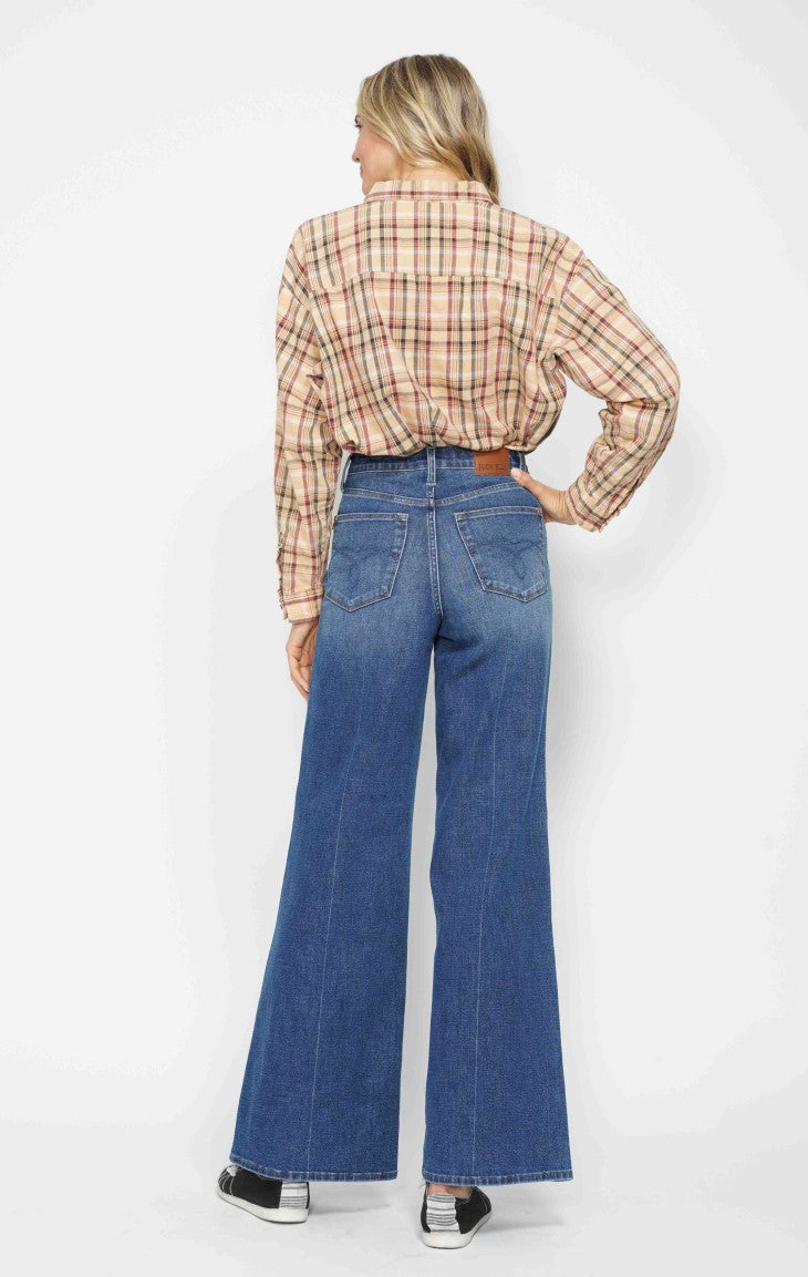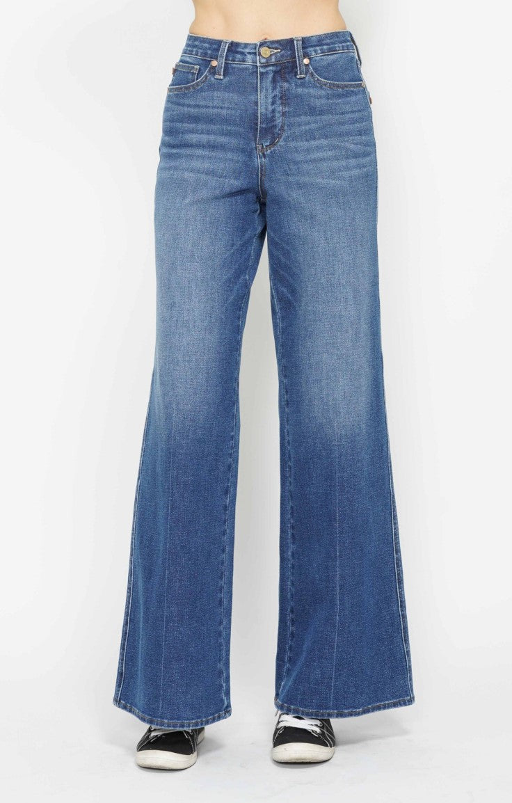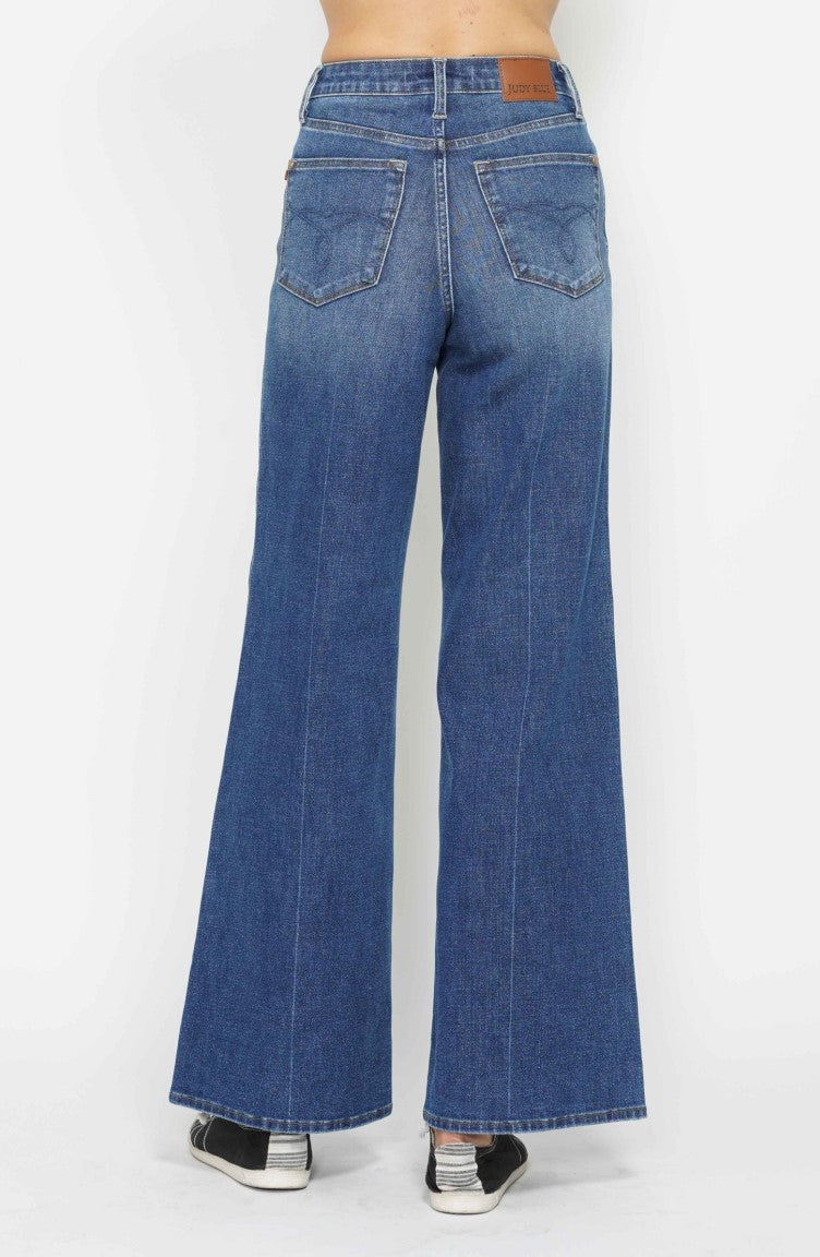 Judy Blue ~ Dark Wash High Waist Tummy Control Retro Wide Leg Jeans ~ Available in Sizes 5-15 ~ Style 88847