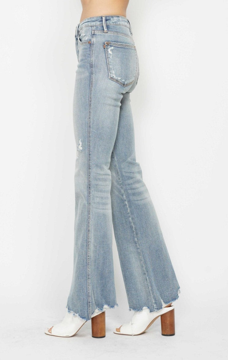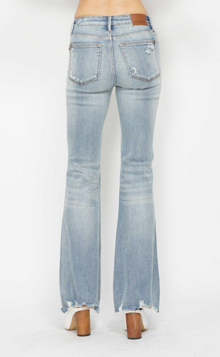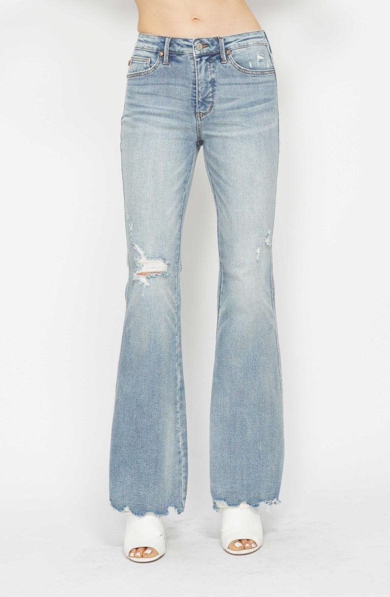 Judy Blue Medium Wash Mid-Rise Tummy Control Destroy Flare Jeans ~ Available in Sizes 5-13!