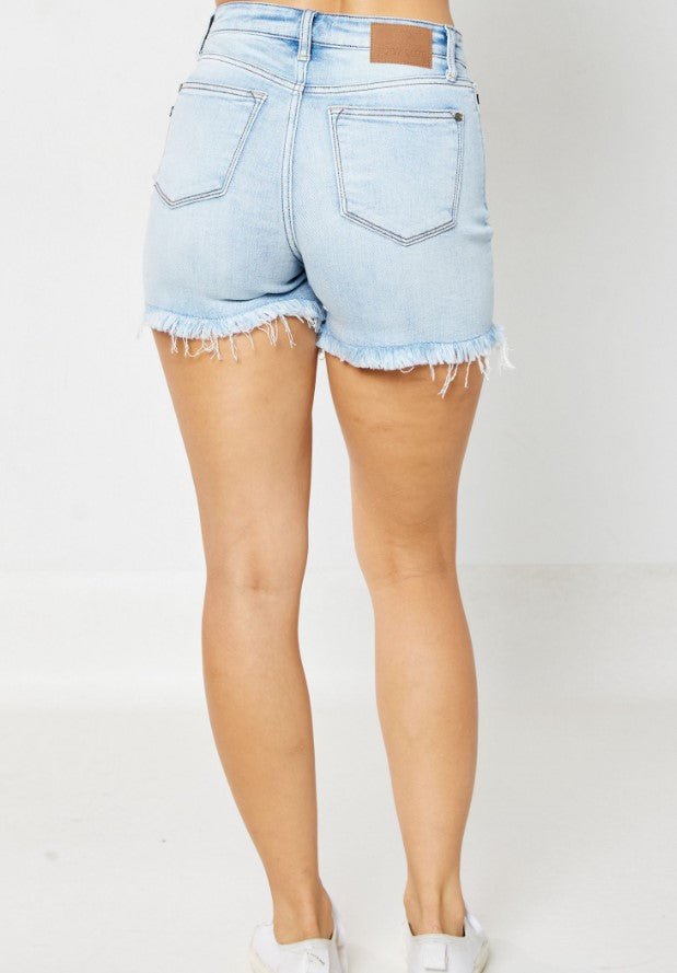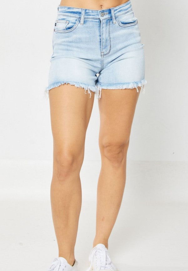 Judy Blue High Waist Light Wash Hem Cut Off Shorts - Style 15250
