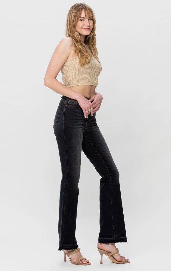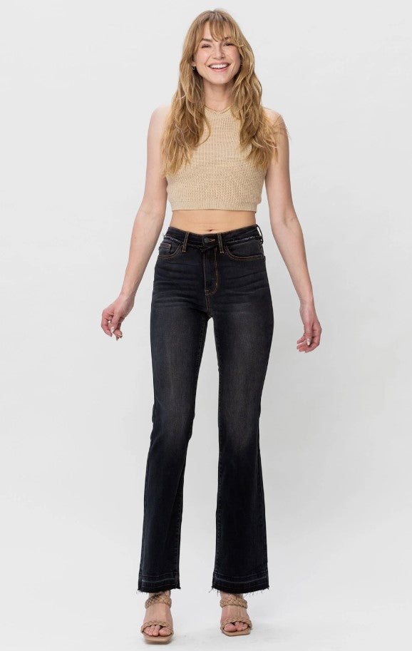 Judy Blue ~ High Waist Release Hem Slim Bootcut Jeans ~ Black ~ Style 82535~ Available in CURVY!