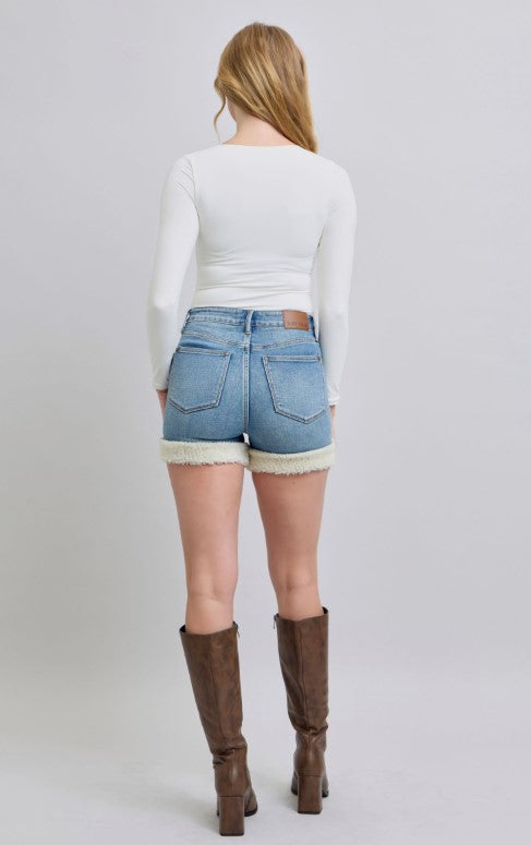 Judy Blue ~ High Waist Tummy Control Shearling Cuff Shorts ~ Available in Sizes Small - XLarge!