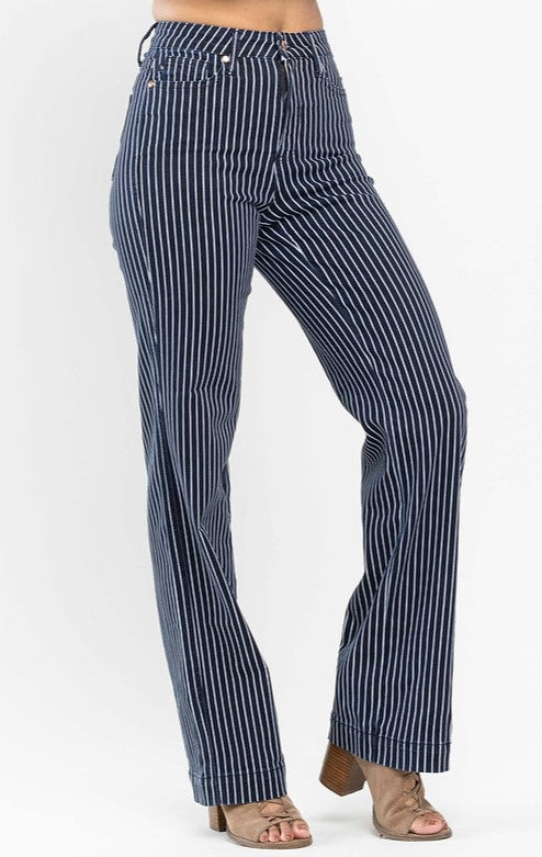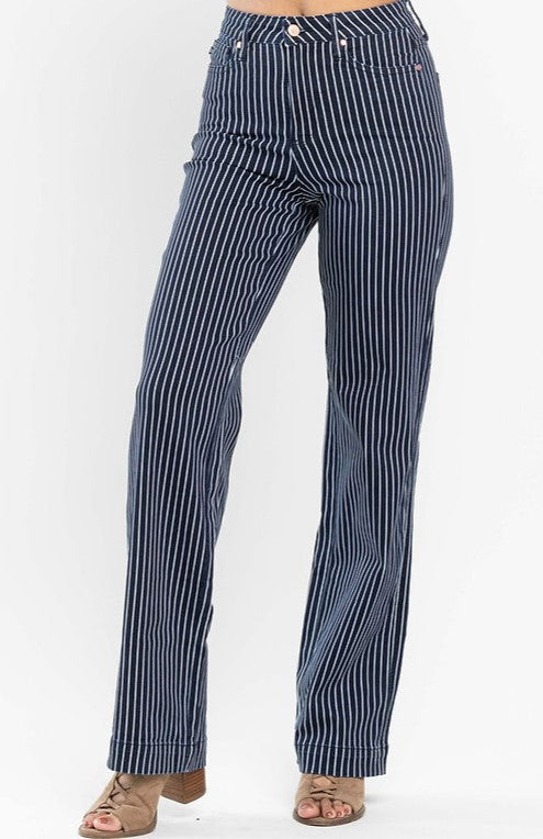 Judy Blue ~ High Waist Tummy Control White Striped Straight Leg Jeans!