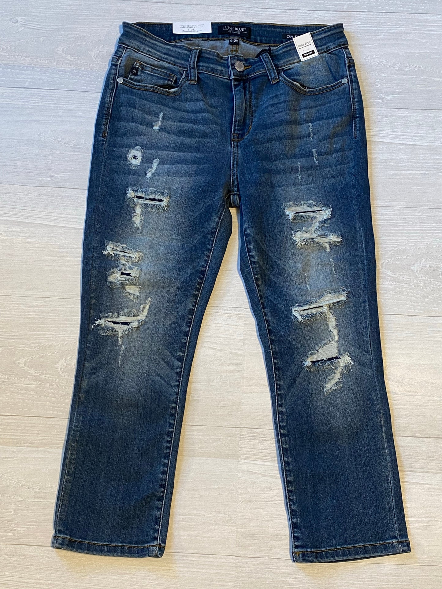 Judy Blue Mid Rise Distressed Capri - 9/29
