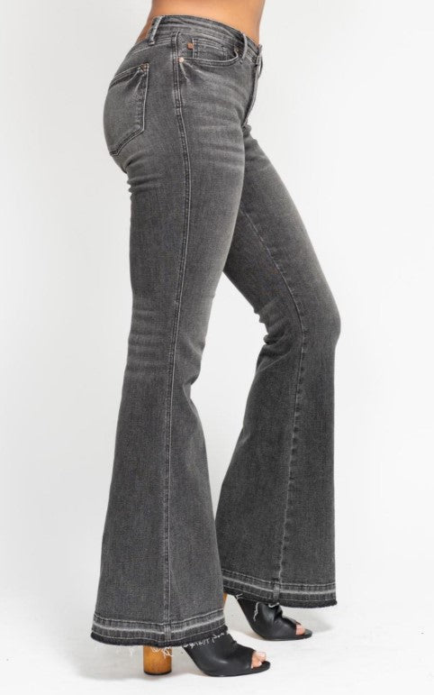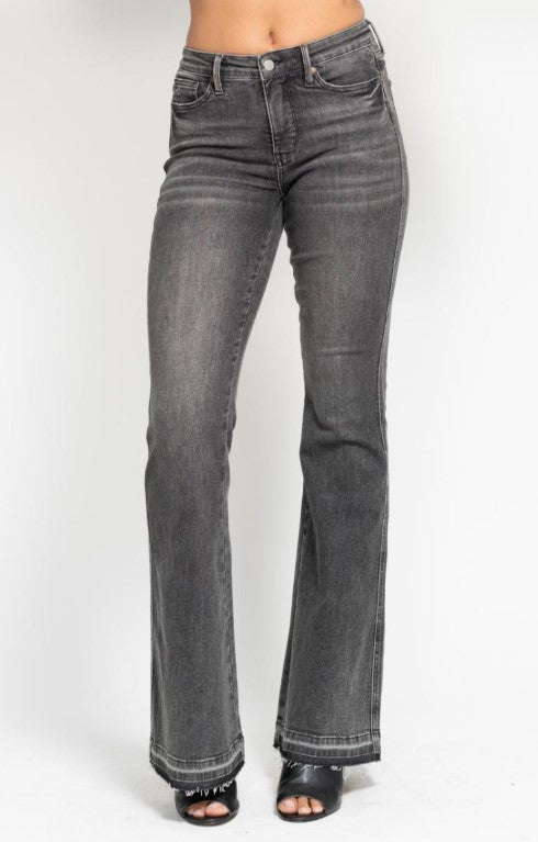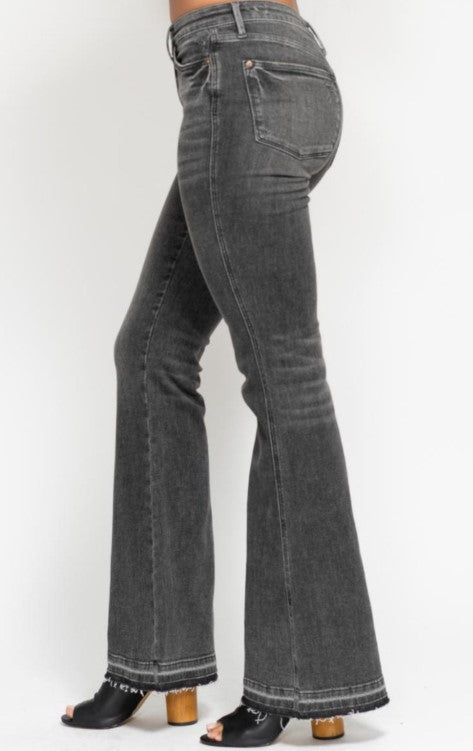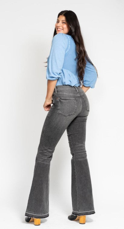 Judy Blue - MidRise Tummy Control Washed Gray Release Hem Flare Jeans ~ Style 88880 ~ Available in Size 1 -15!