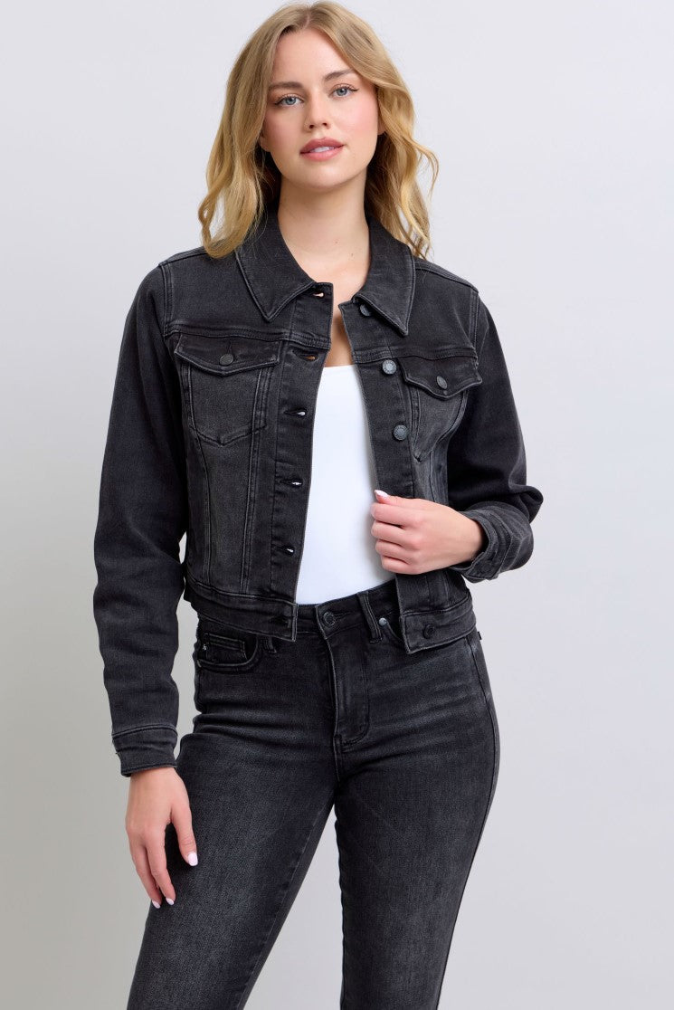 Judy Blue Denim Classic Denim Jacket ~ Style 7878 ~ Vintage Black