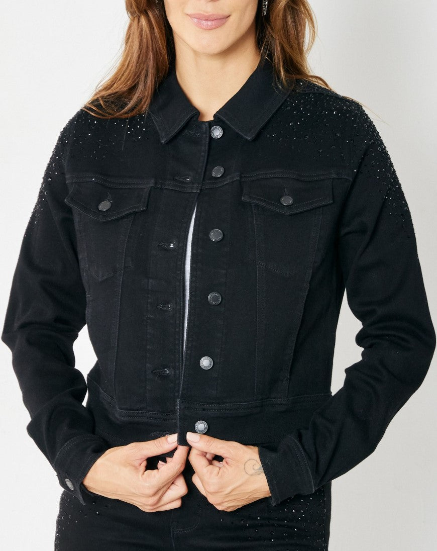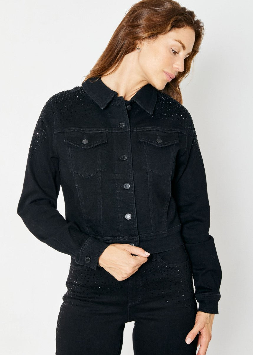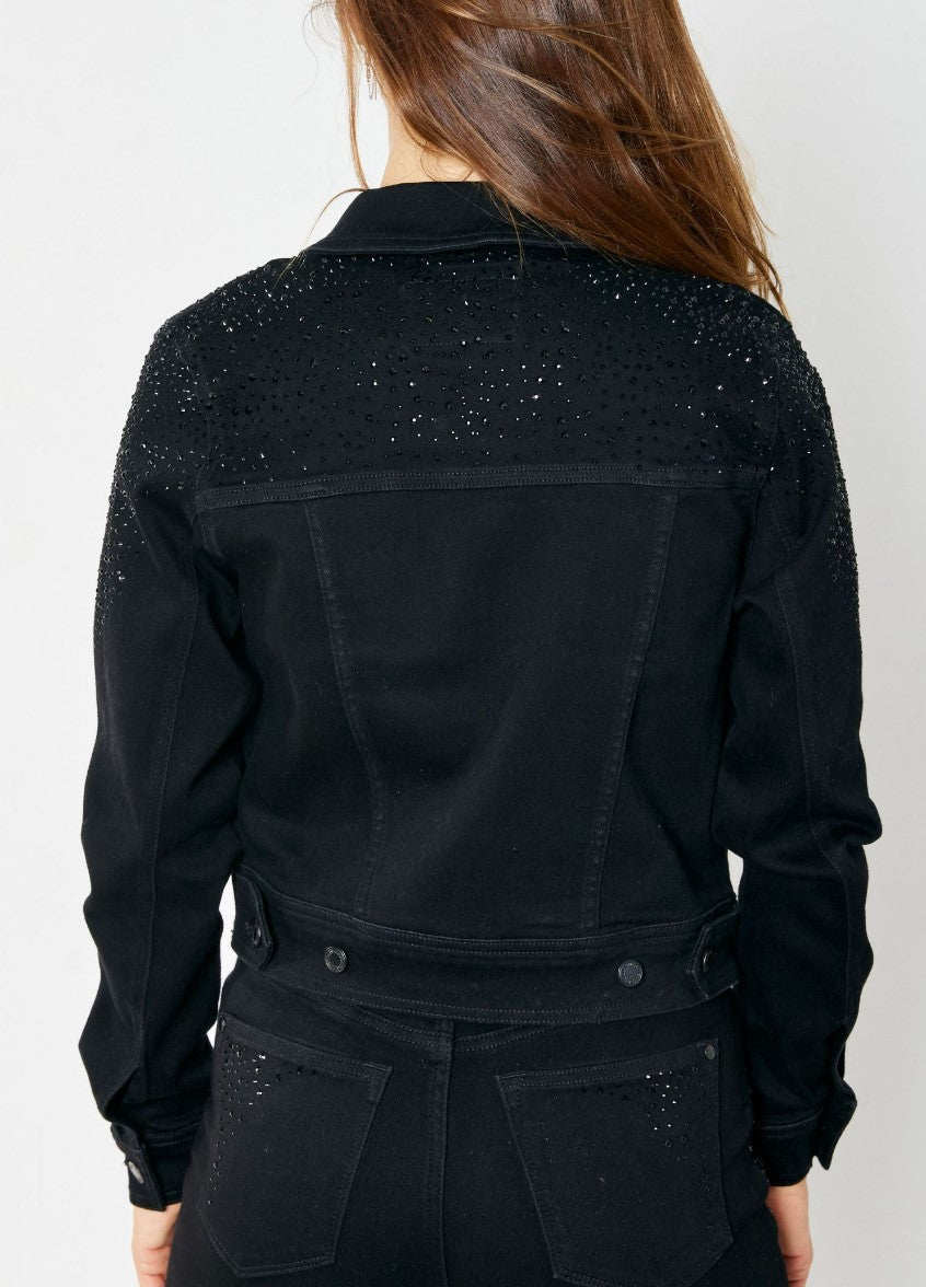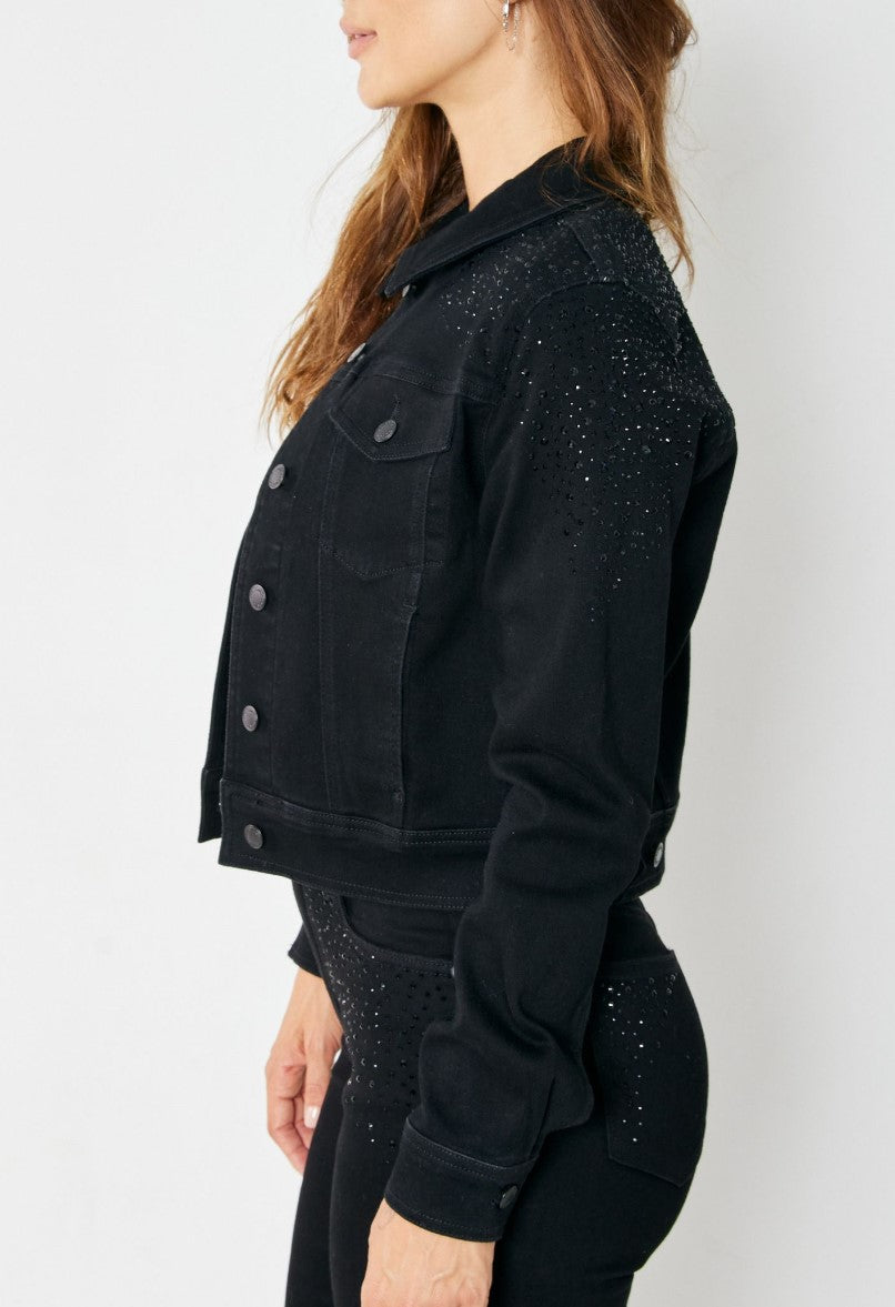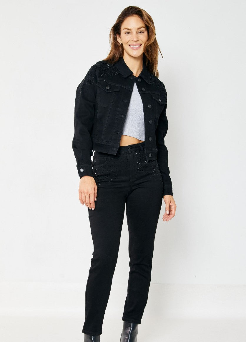 NEW ~ JUDY BLUE Black Denim Rhinestone Embellished Jacket ~ Style 7872