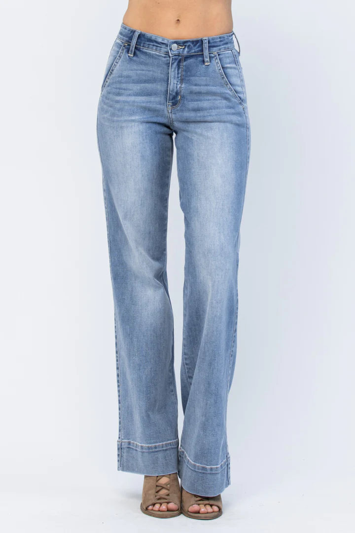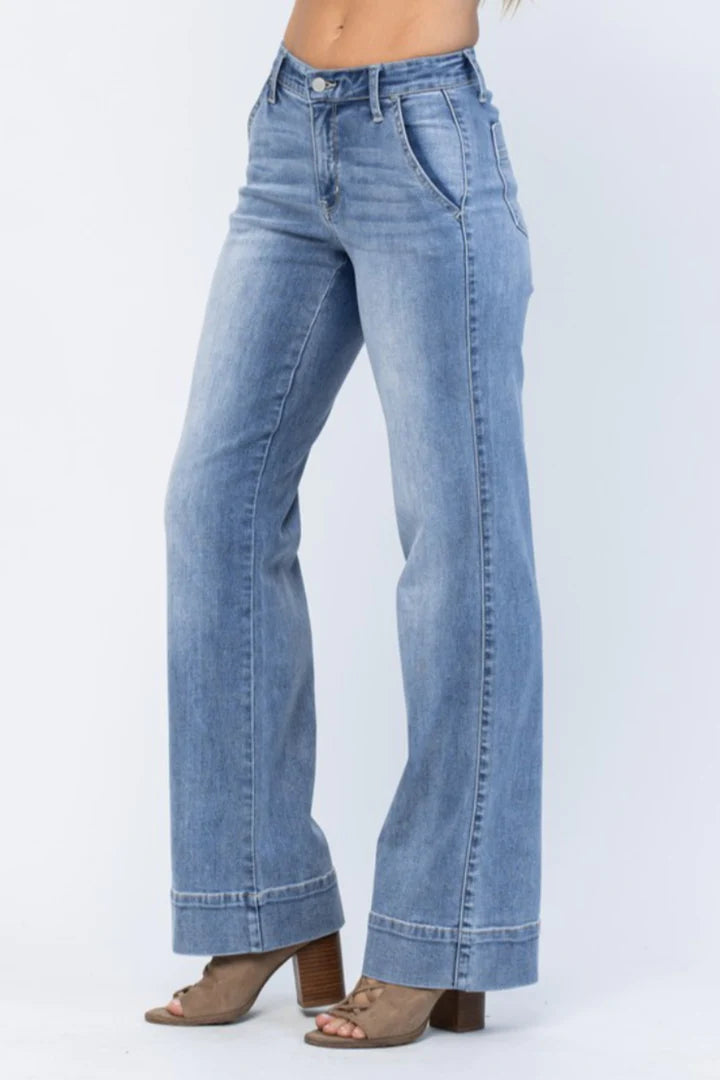 JUDY BLUE - Medium Wash Wide Leg Denim Trouser ~ Style 82401REG ~ Available in CURVY