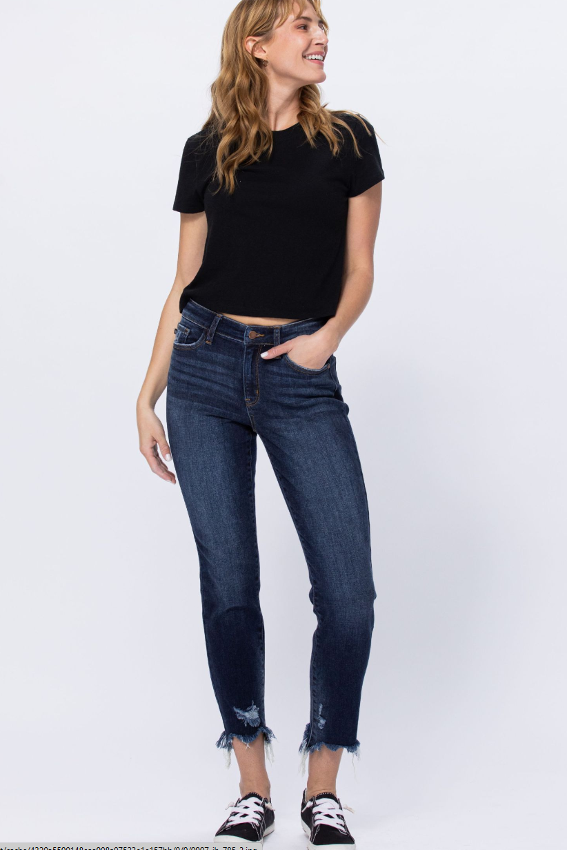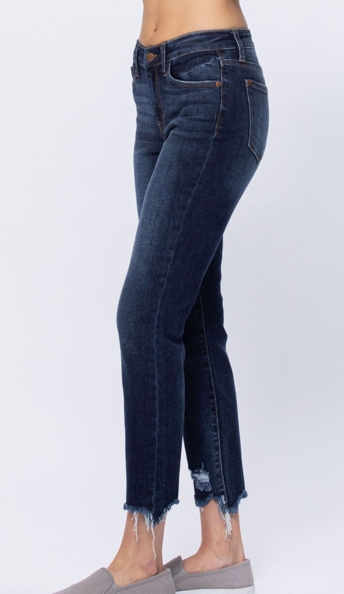 JUDY BLUE - Mid-Rise Slim Fit Dark Wash Boyfriend Jeans ~ Style 82322 ~ Available in CURVY!