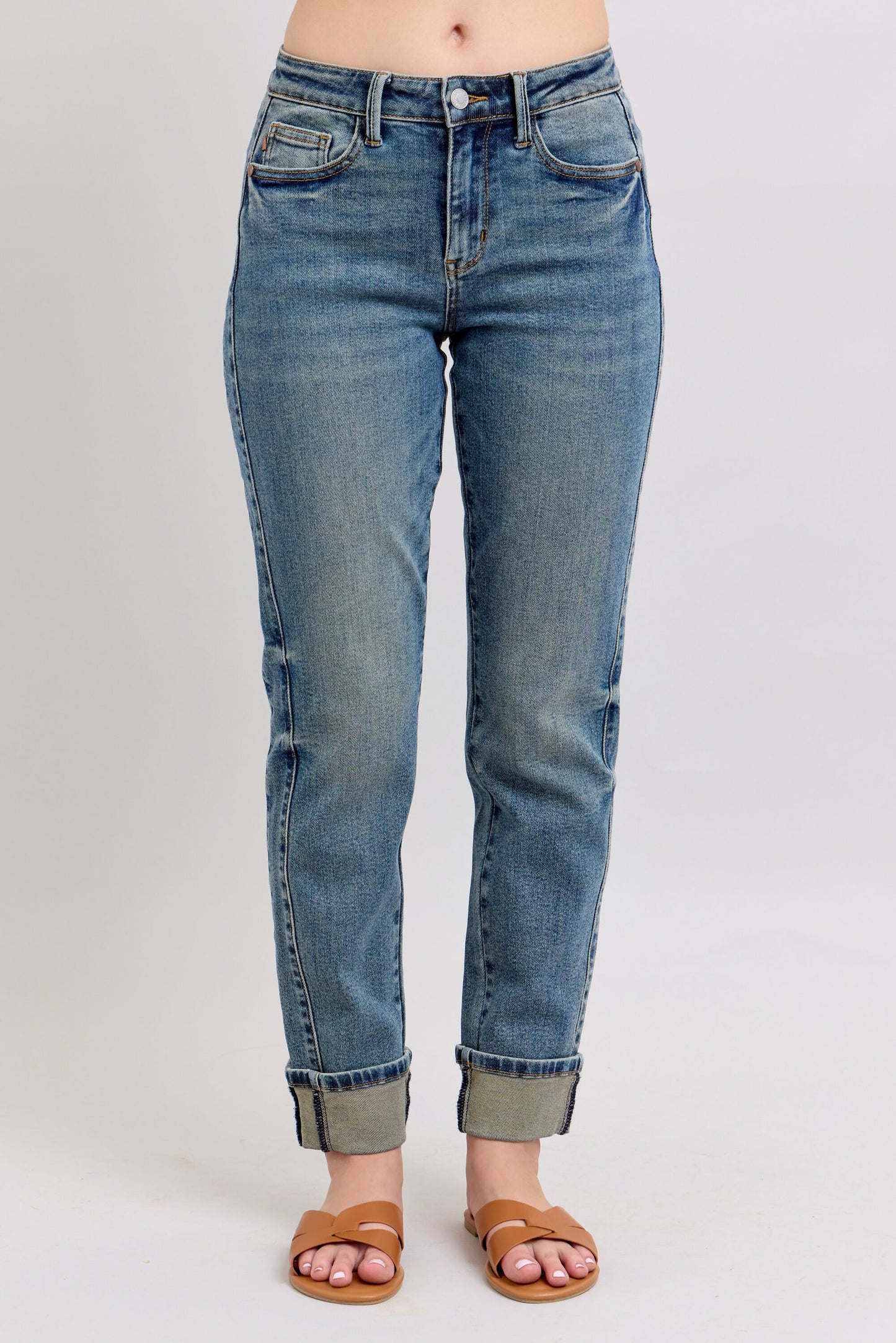 NEW! Judy Blue Mid Rise Vintage Wash Double Roll Cuff Boyfriend Jeans ~ Style 88946