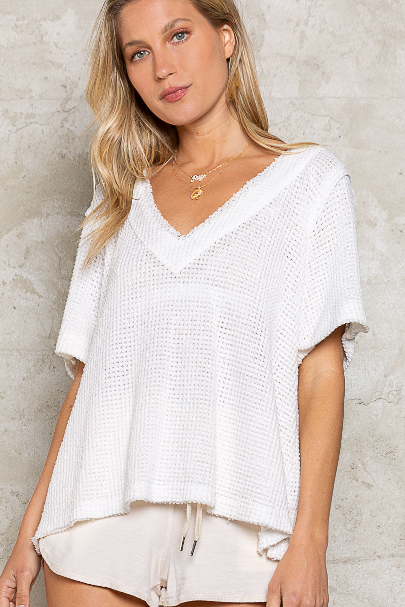 NEW ~ POL Waffle Weave Top ~ Ivory