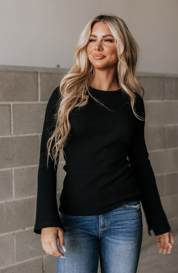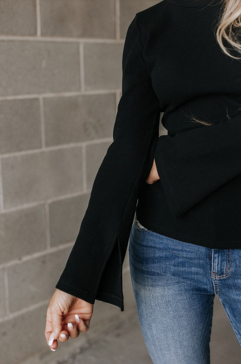 Ampersand Avenue Nightingale Fluted Sleeve Black Top ~ Available in CURVY!