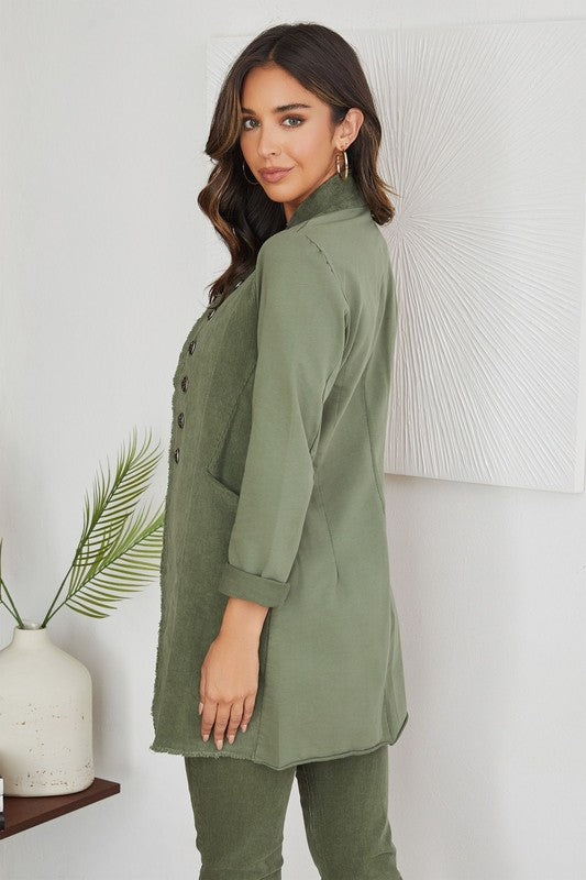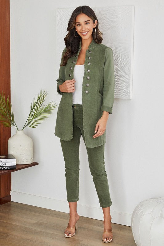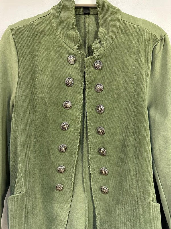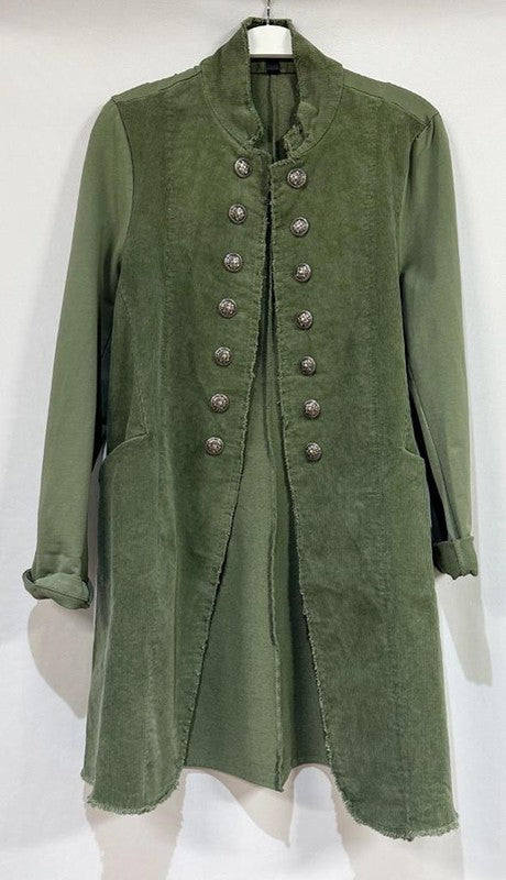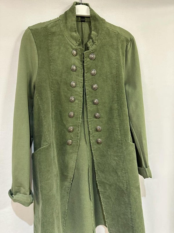 Venti6 Corduroy Long Sgt Pepper Army Style Jacket - Army Green!