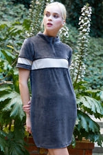 How can you resist soft, comfortable and velvet in a mini dress? Enter POL's charcoal and ivory sporty mini dress! Features contrast strip detail, mock turtleneck style with half zipper. You can dress this up or down - sandals or sneakers, both work perfectly!