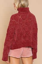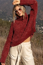 The Vanessa ~ Blood Red Cropped Eyelet Cutout Turtleneck Pullover Sweater from POL!