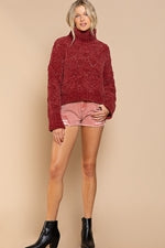Dun-dunta - presenting the Vanessa from POL! Super soft, with eyelet cutouts in a cropped style. I love the snuggly turtleneck on this too! The darker red color spans many different seasons!