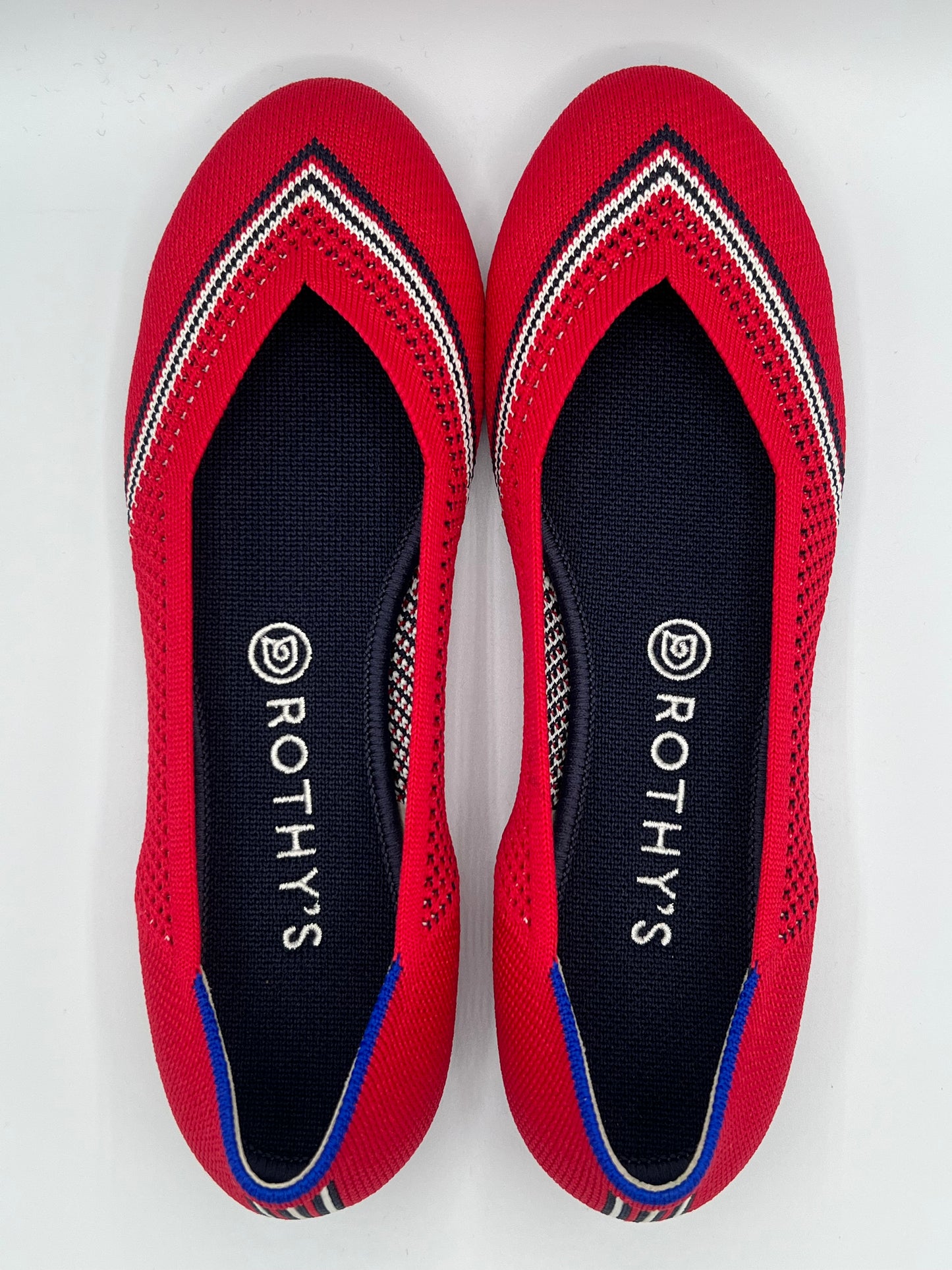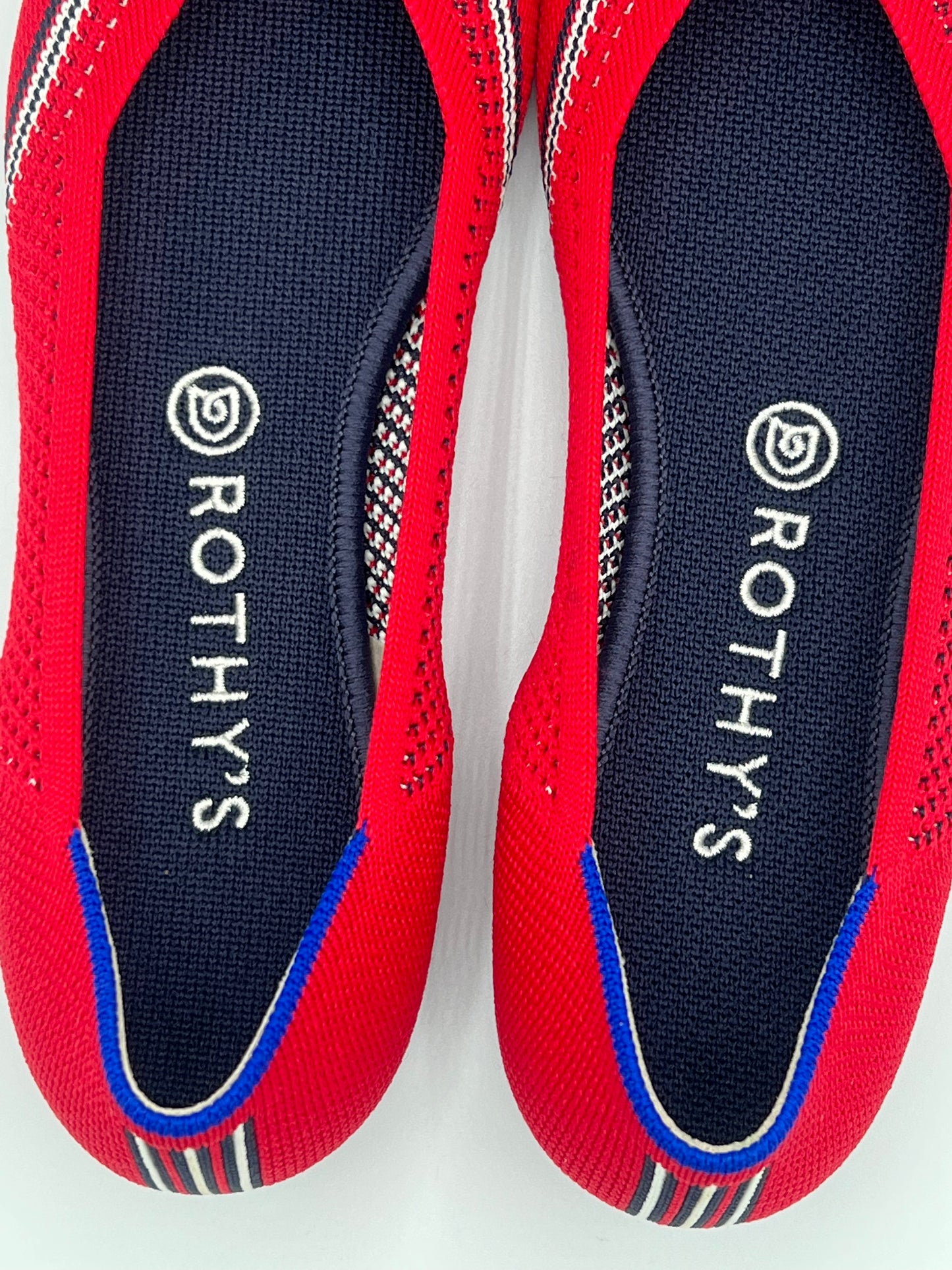 Add EUC ~ Rothy's Cherry Red Stripe Flats ~ Size 9.5 to the cart
