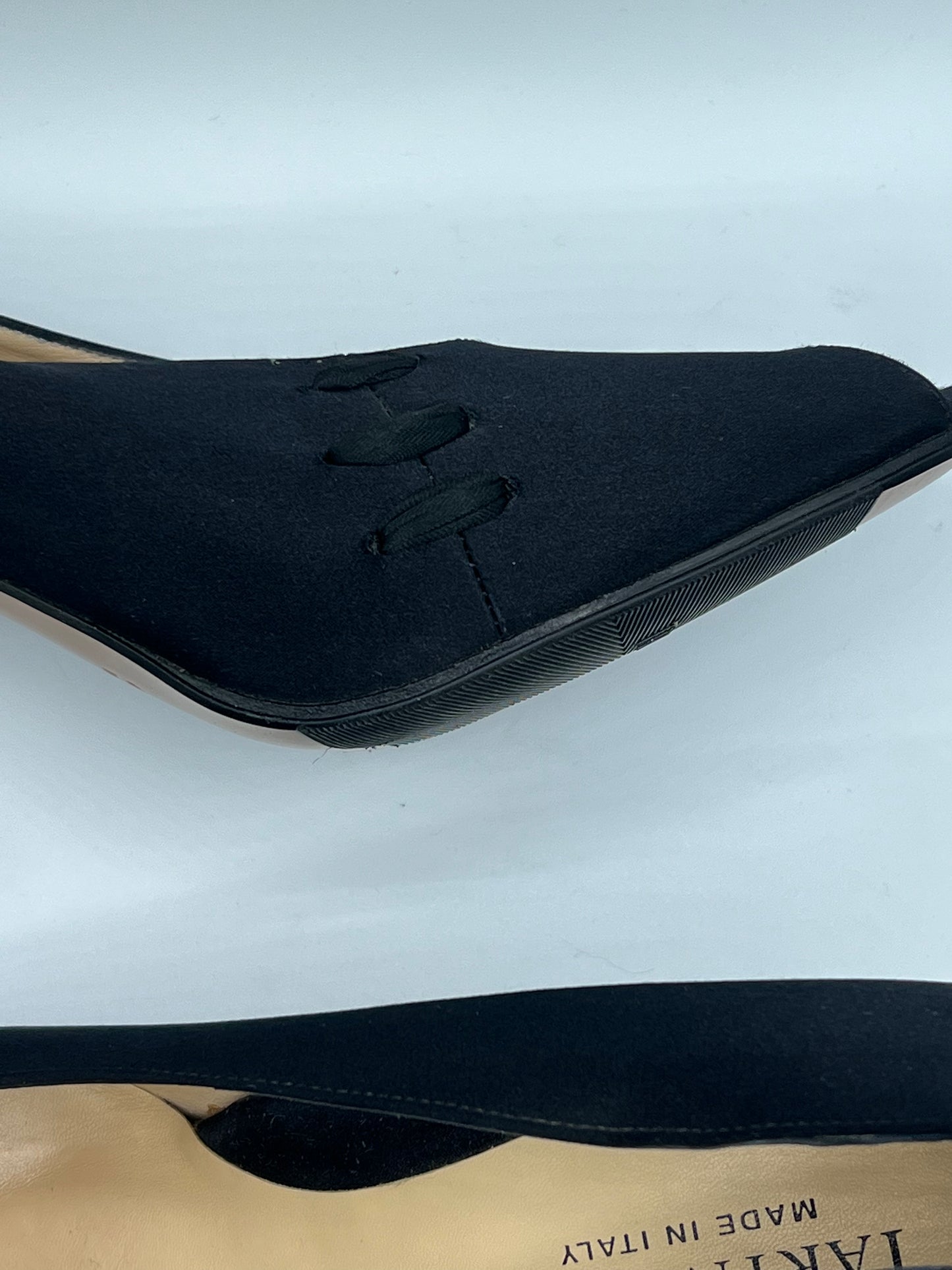 Taryn Rose Black Satin Peep Toe Heels with satin ribbon detail on sides ~ Size 41 - Never been worn.
