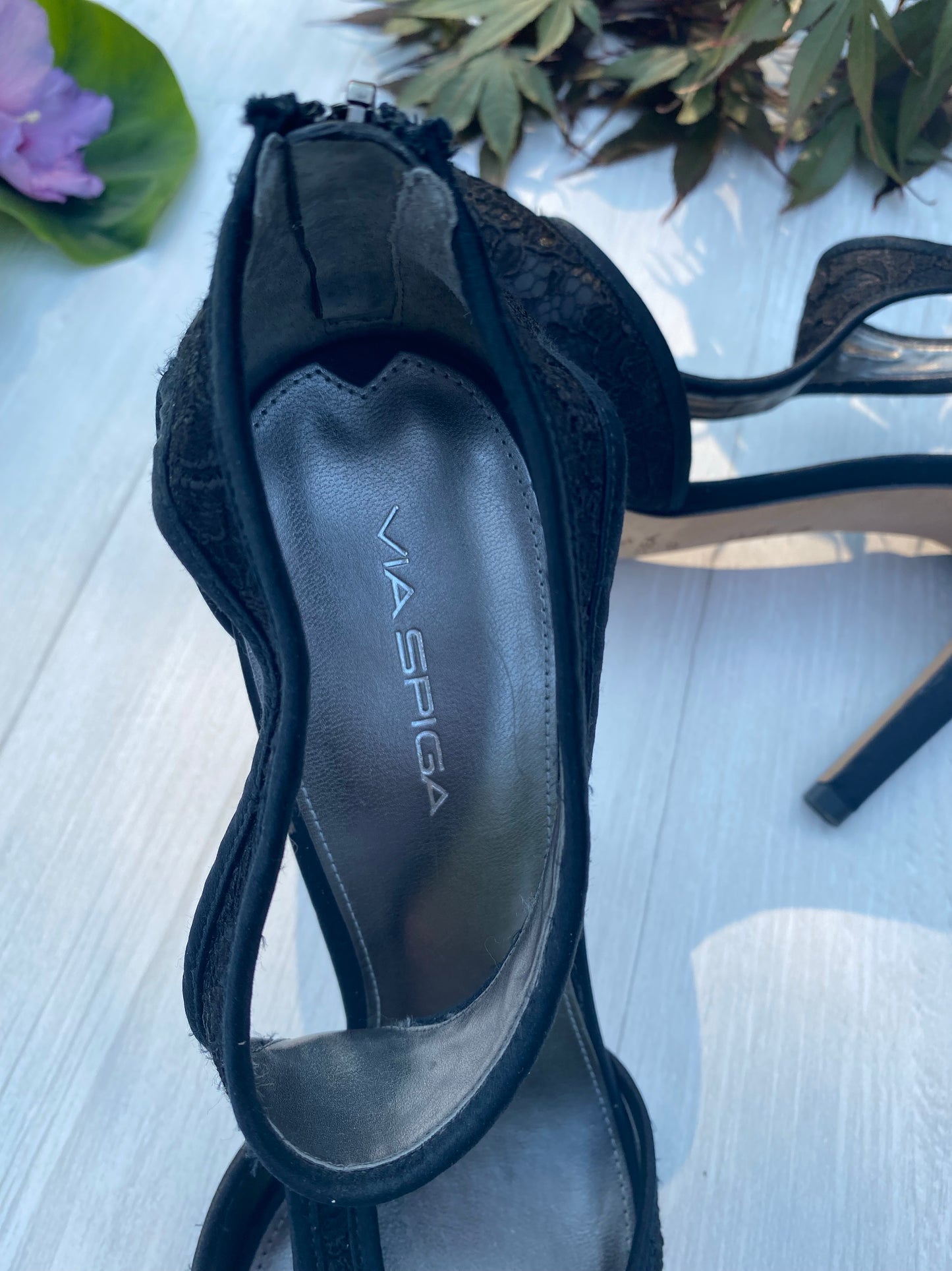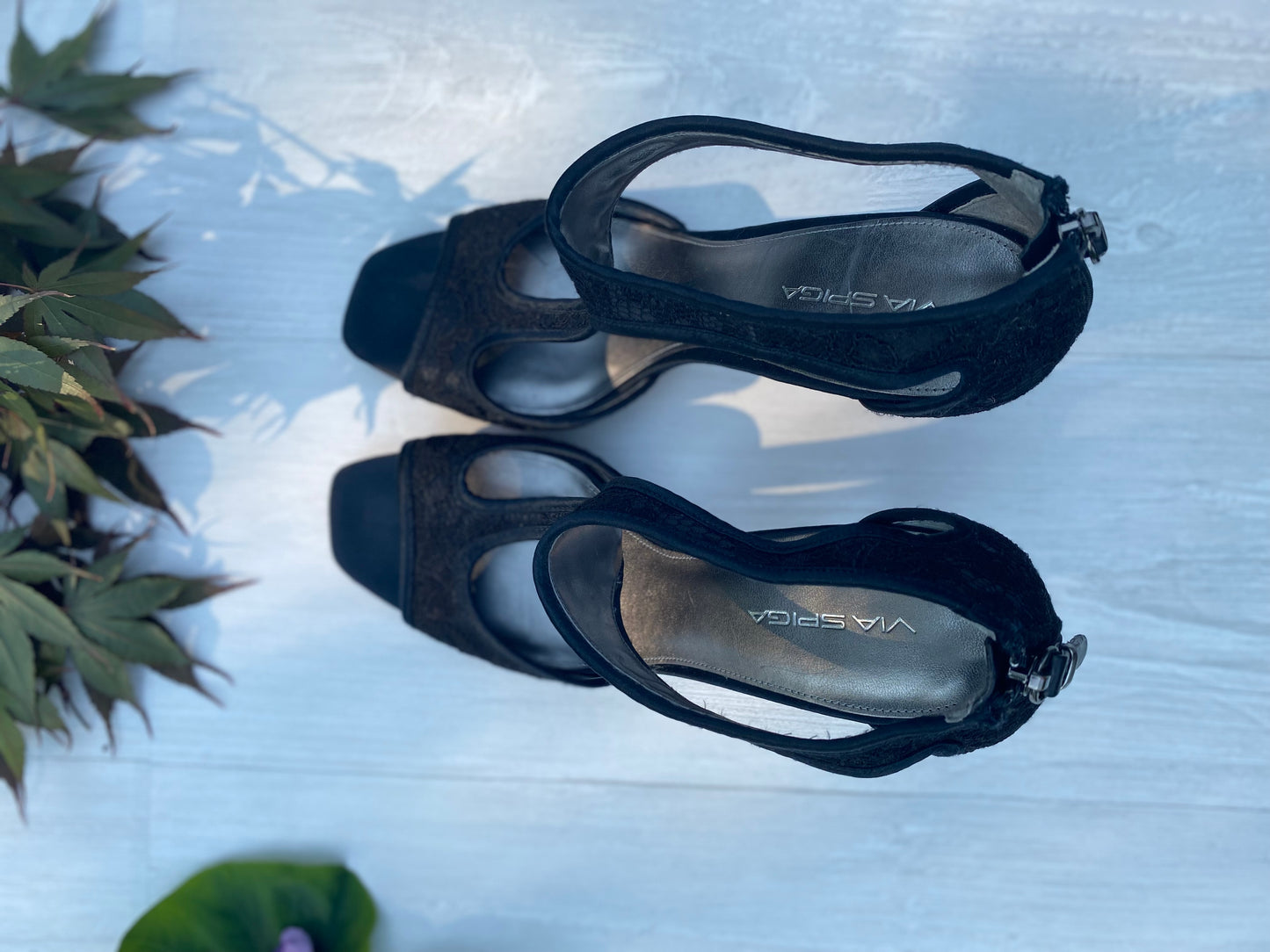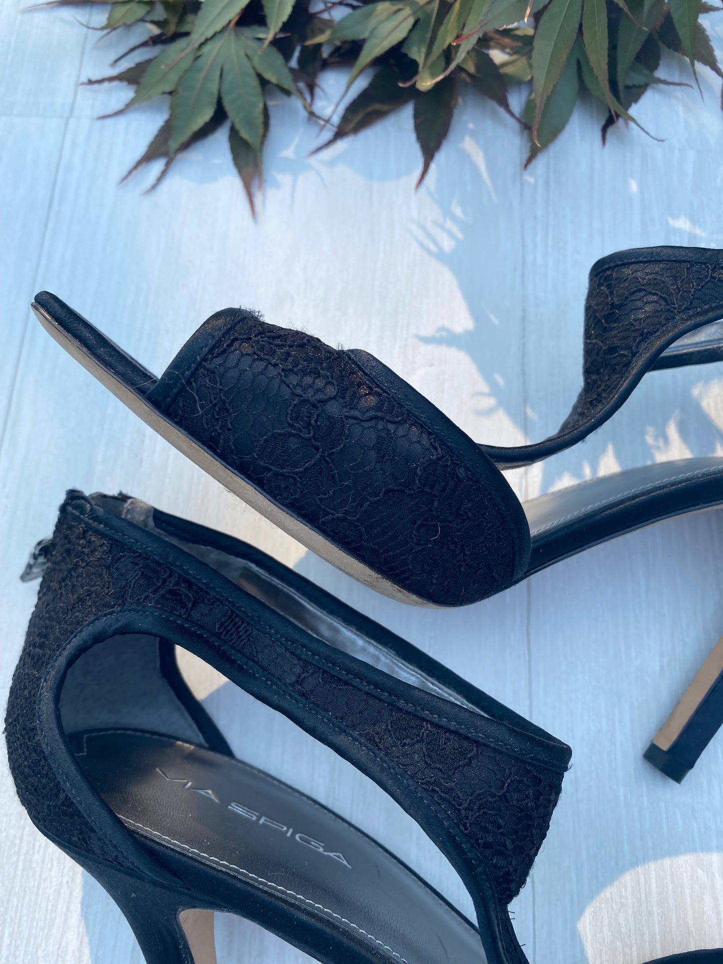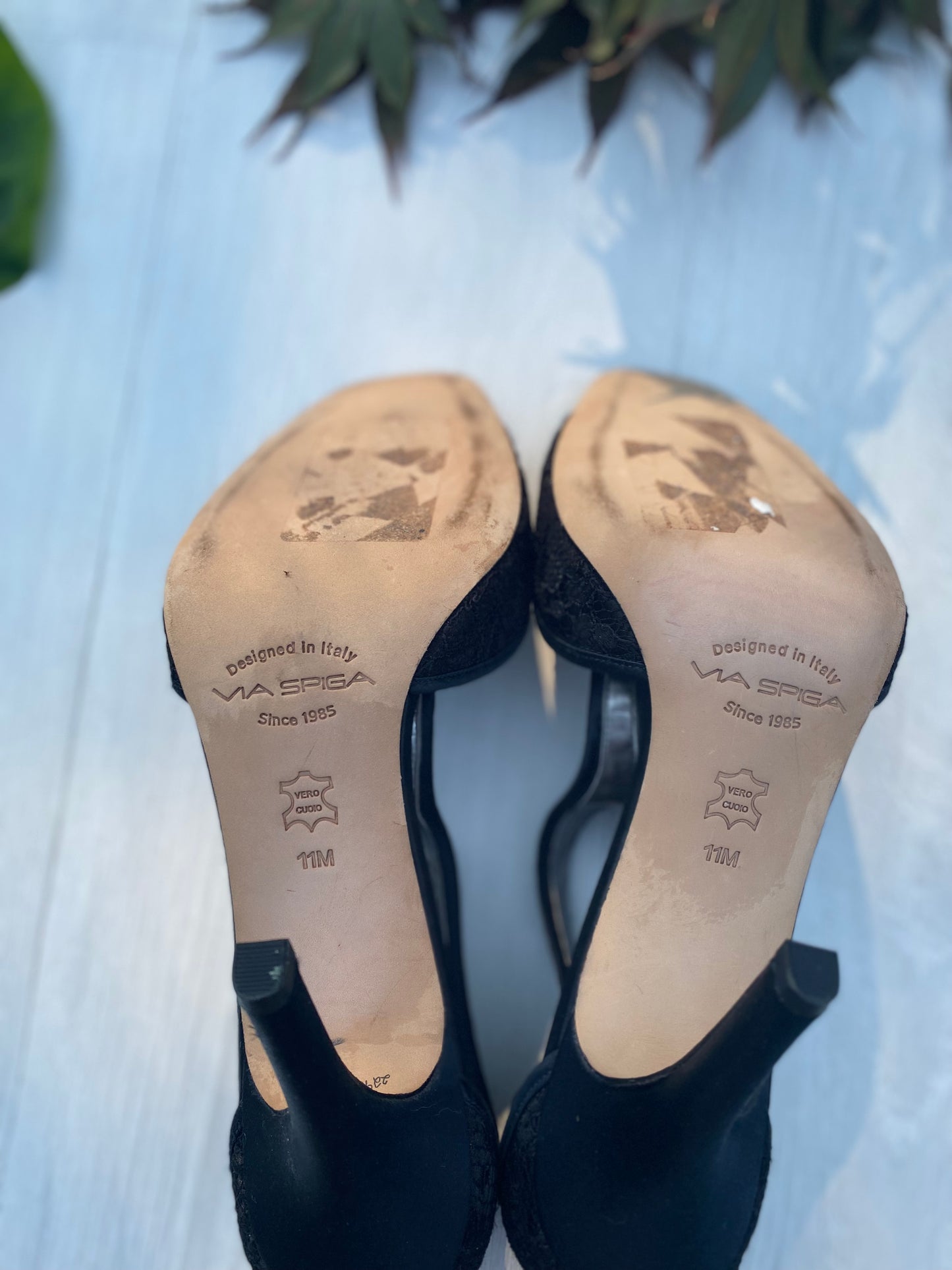 EUC ~ VIA SPIGA Black Lace Peep Toe Heel ~ Size 11
