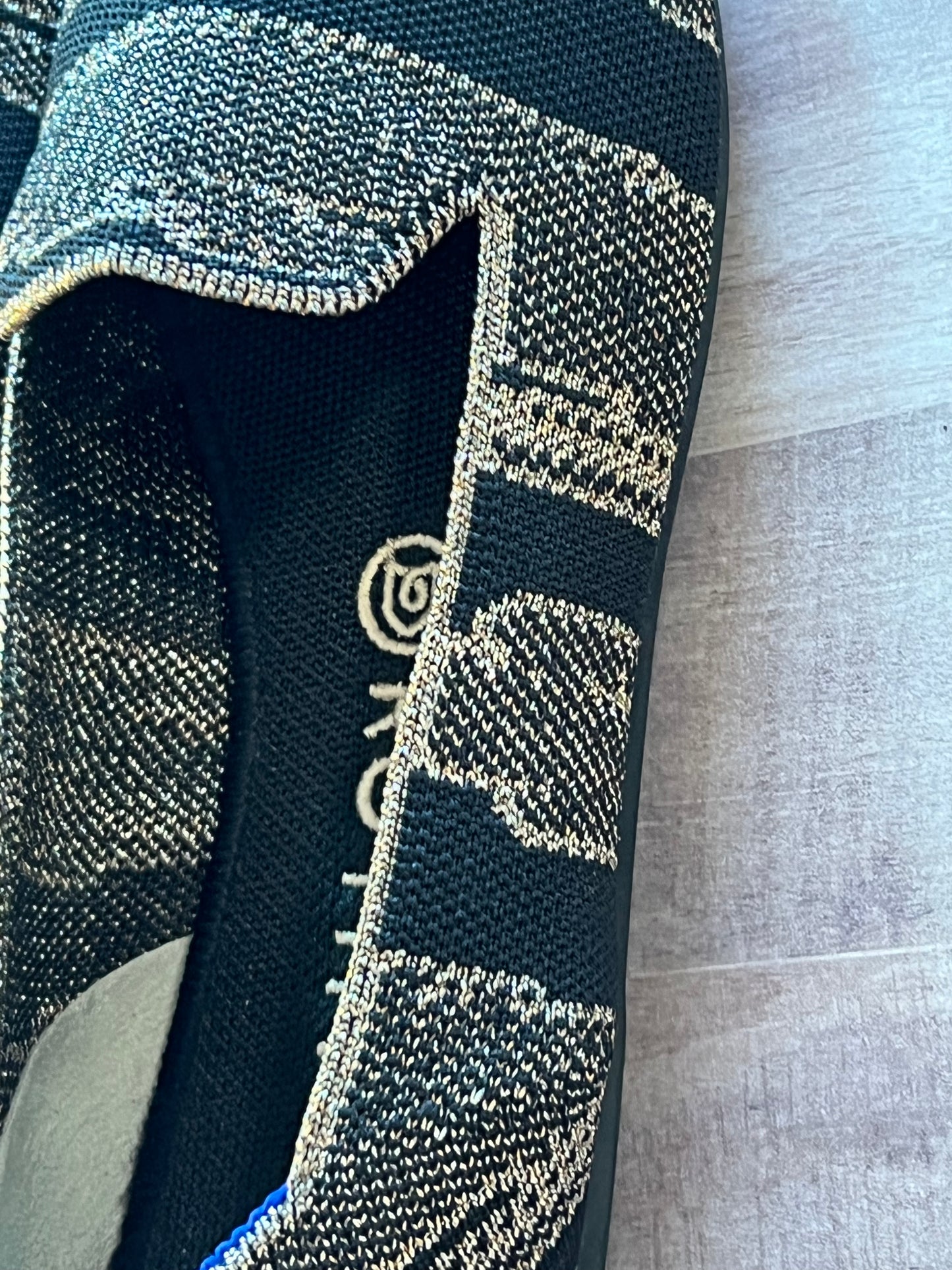 Rose gold and silver threads create a shimmering pattern on the shoe's black background. The subtle shimmer is the perfect addition to any outfit that you want to make a little more glam!