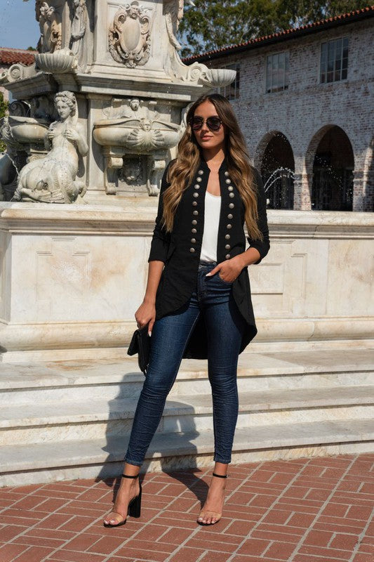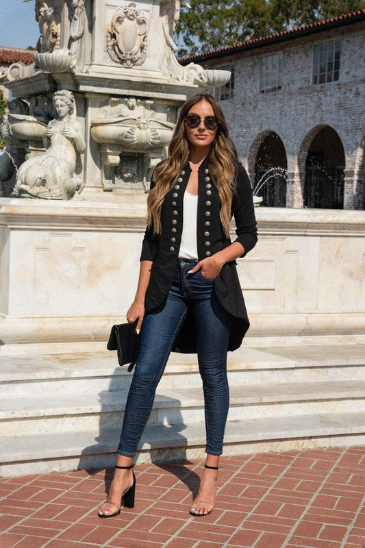 BESTSELLER!! Venti6 Sgt Pepper Hi - Lo Long Jacket ~ Vintage Black (Nero)