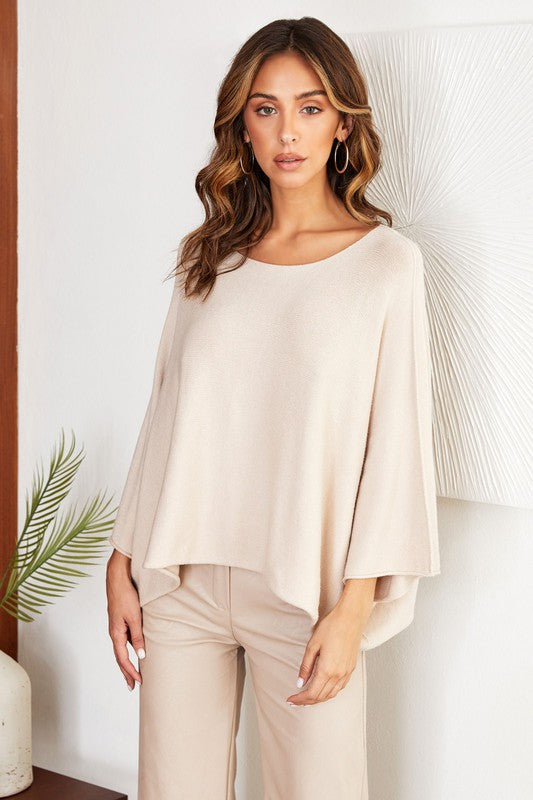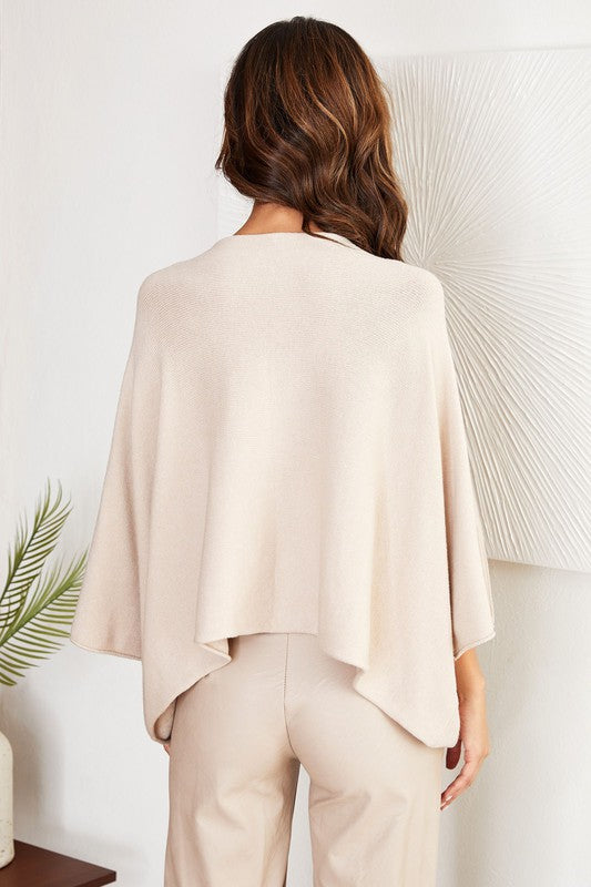 Venti6 Super Soft Boatneck 3/4 Sleeve Poncho-Style Sweater ~ Beige
