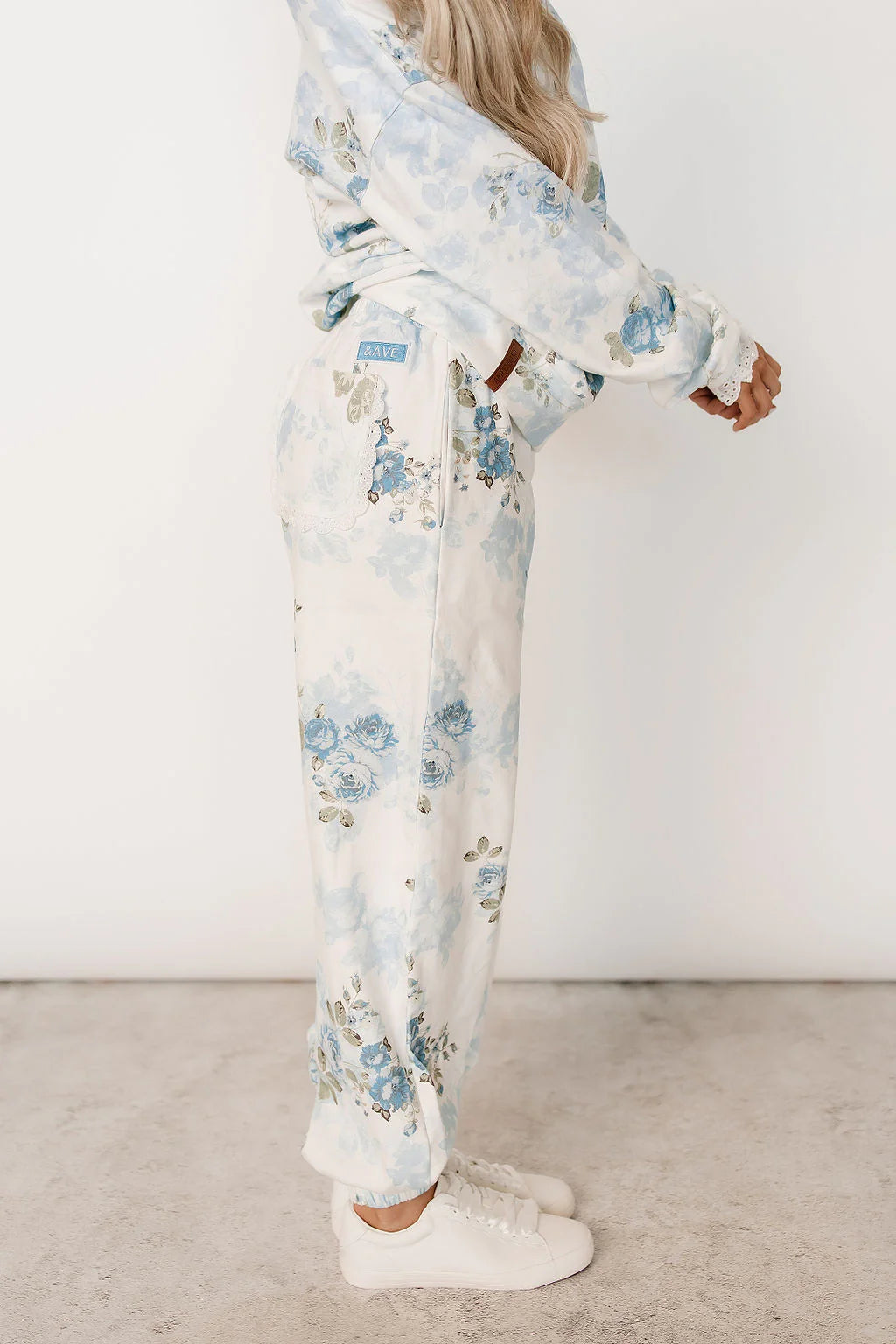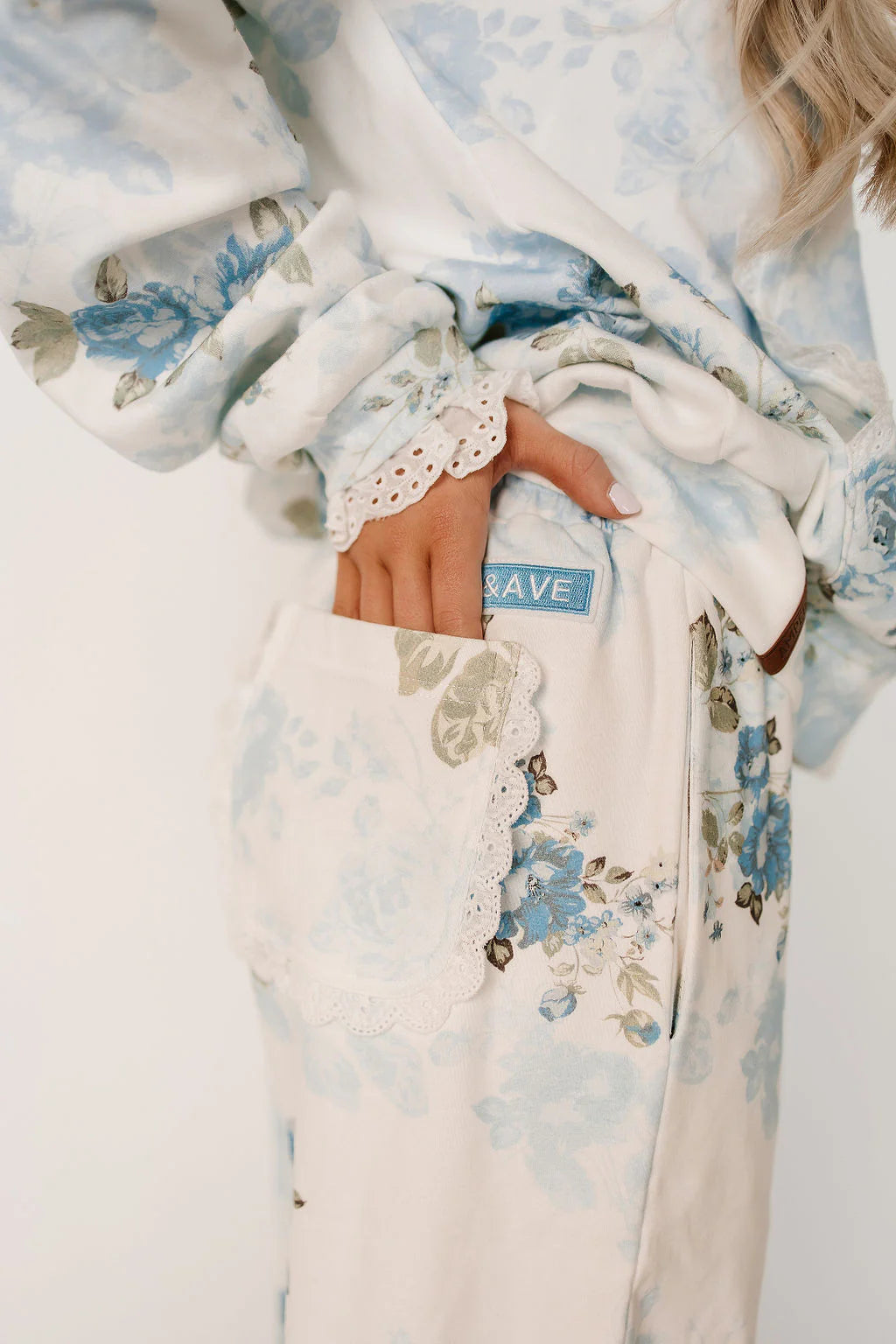 Ampersand Avenue ~ Lace Pocket Joggers - Light Blue Floral ~ Stop and Stare ~ Available in Curvy!