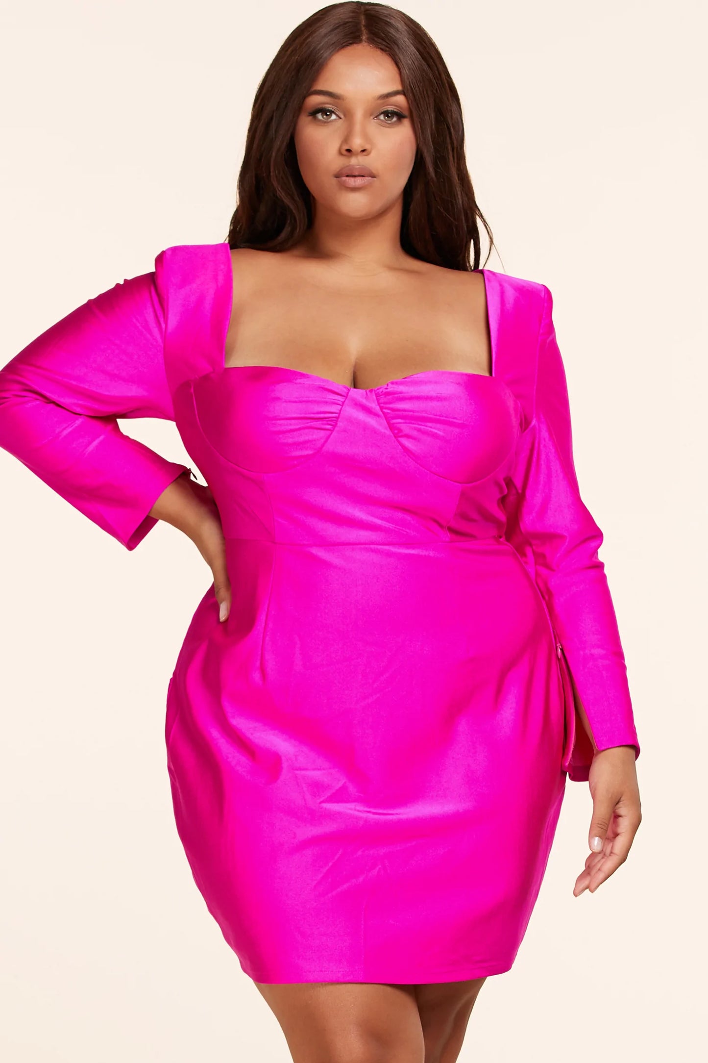 Latiste Neon Fuchsia Sweetheart Midi Dress ~Curvy ~
