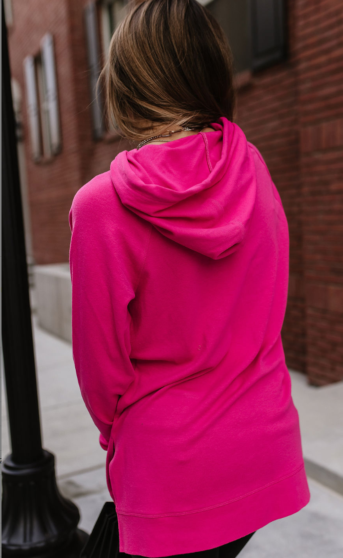 Hot pink sideslit hoodie from Ampersand Avenue - perfect color and fit!