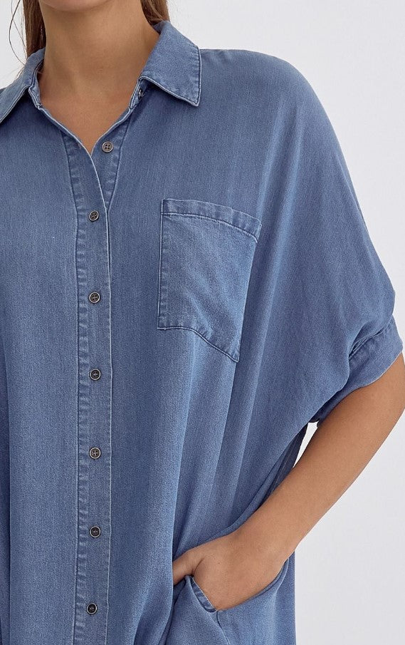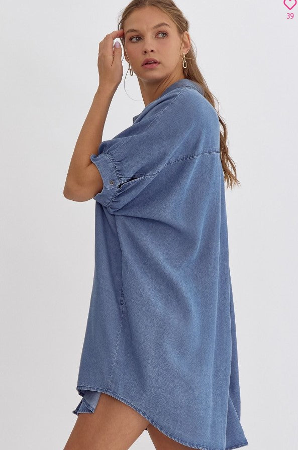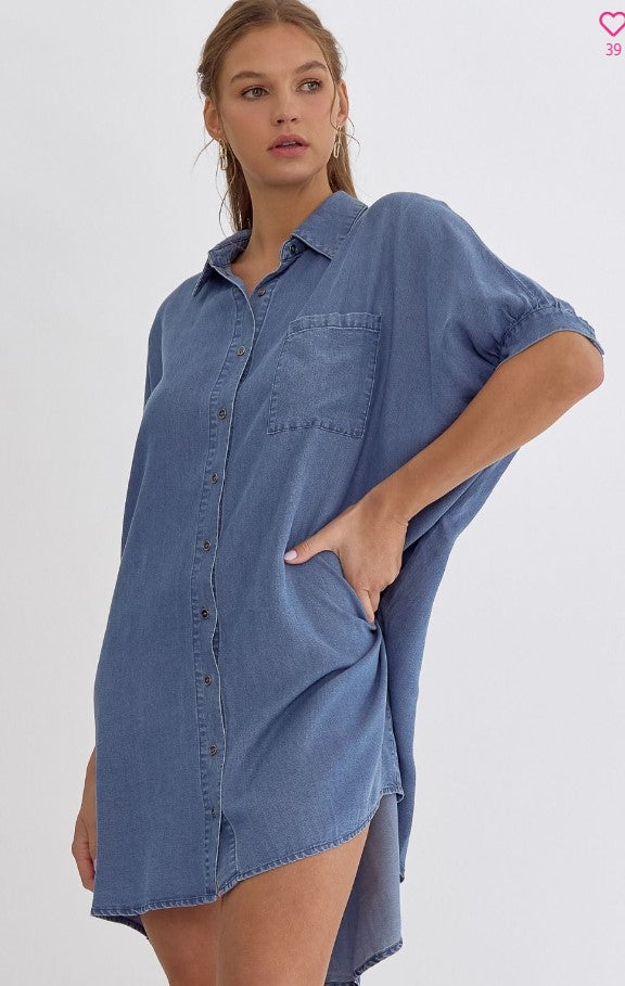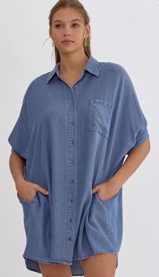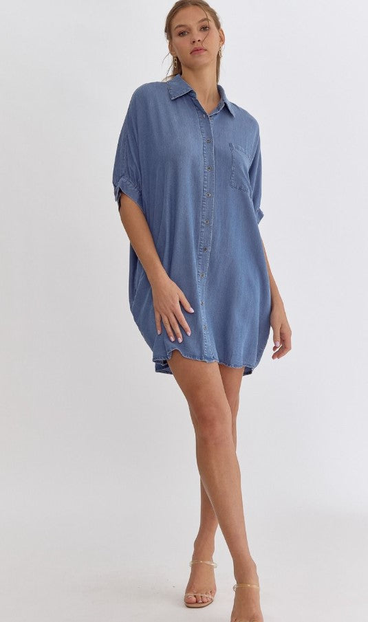 NEW ~ Entro Soft Lightweight "Denim" Mini Dress ~ Vintage Blue!