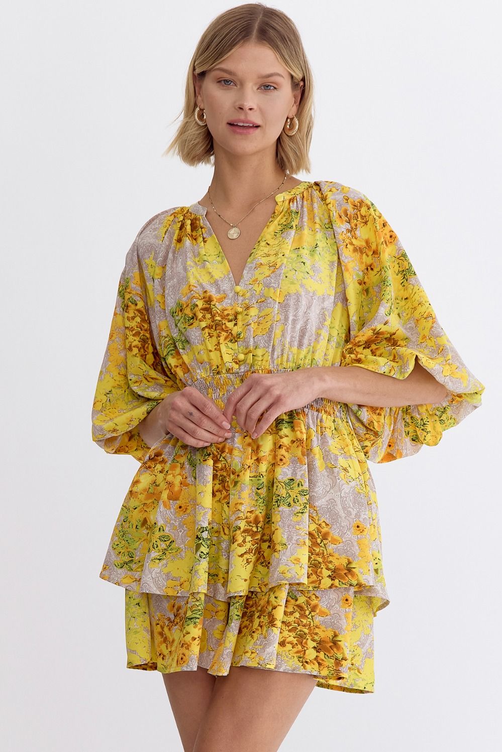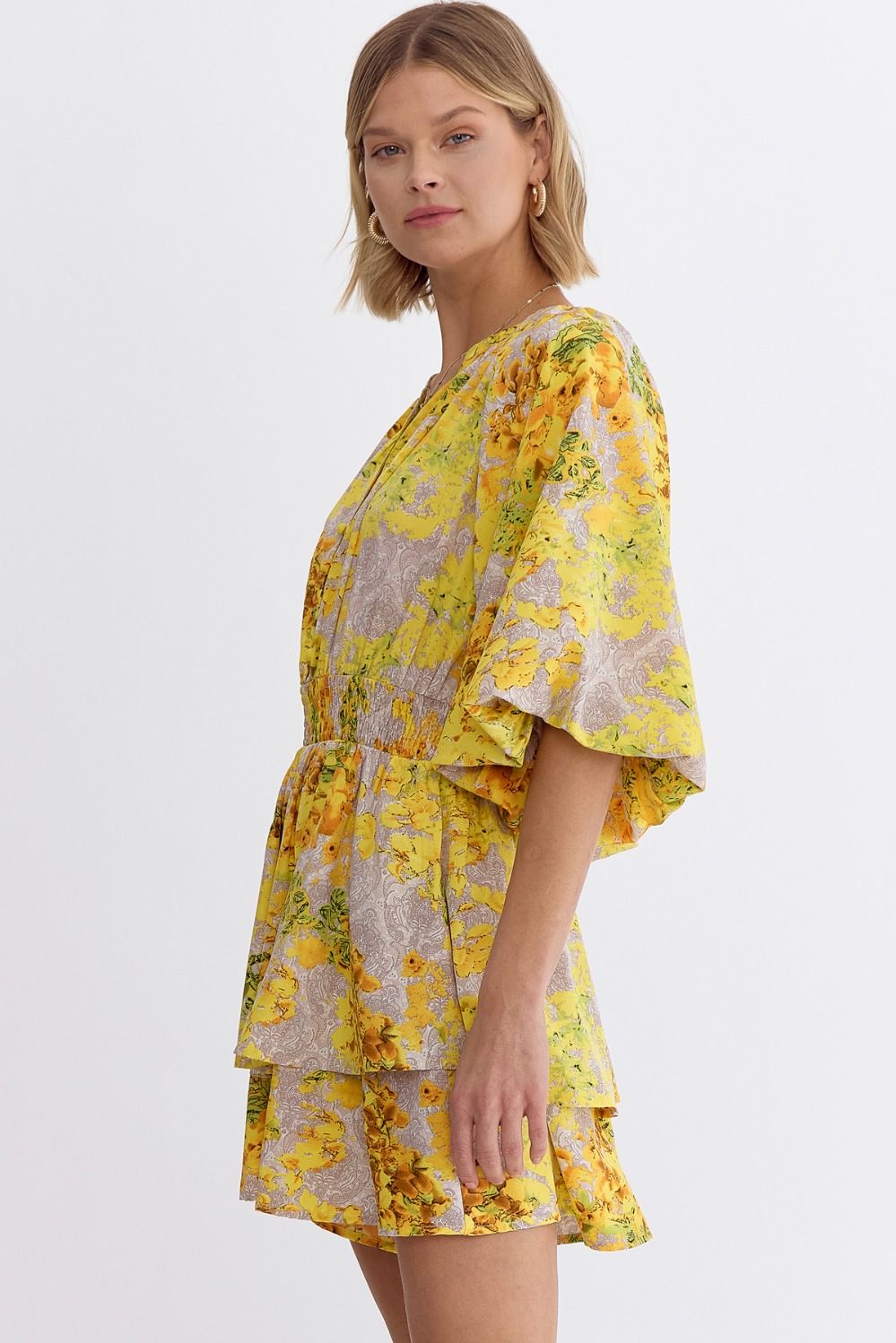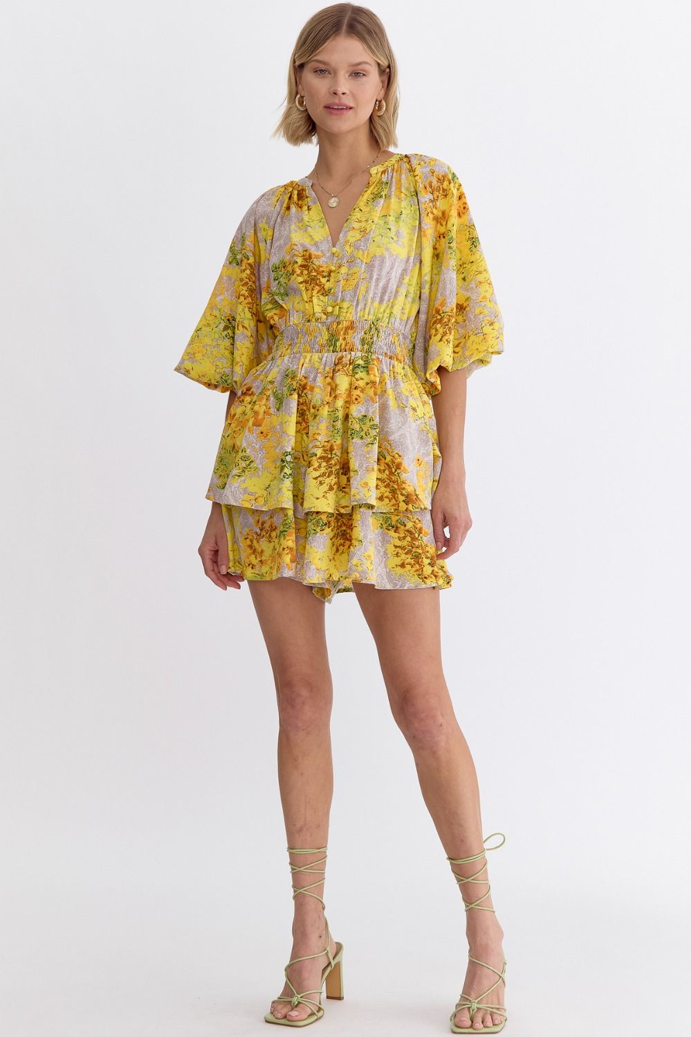 NEW - Entro Yellow Floral Print V-Neck Half Sleeve Mini Romper!