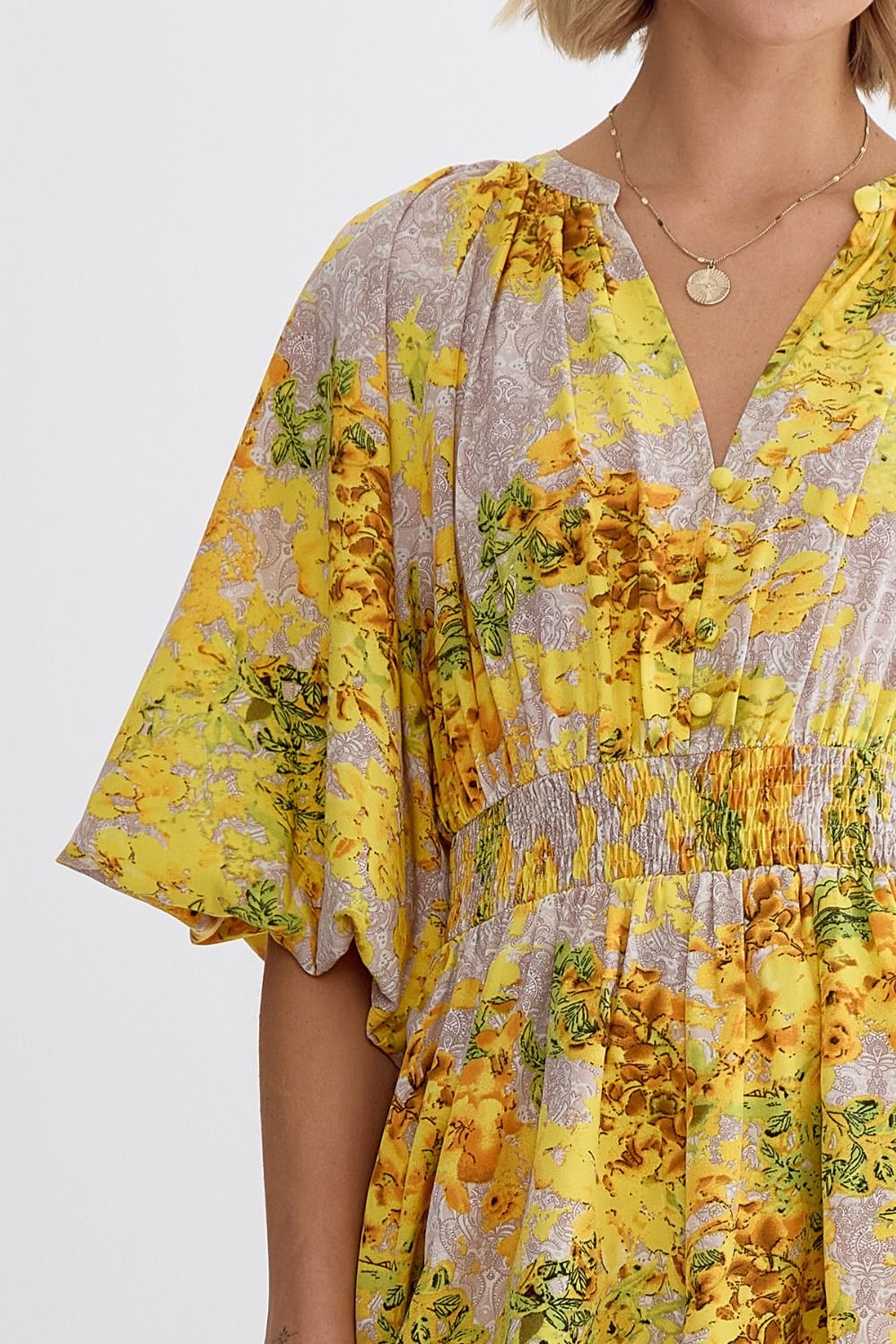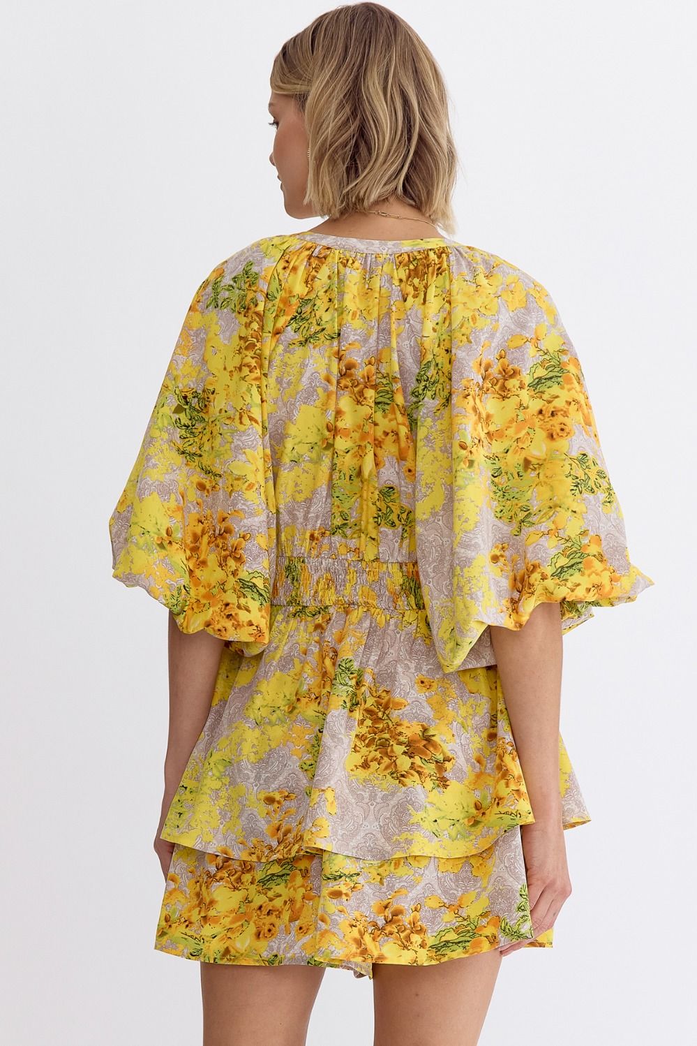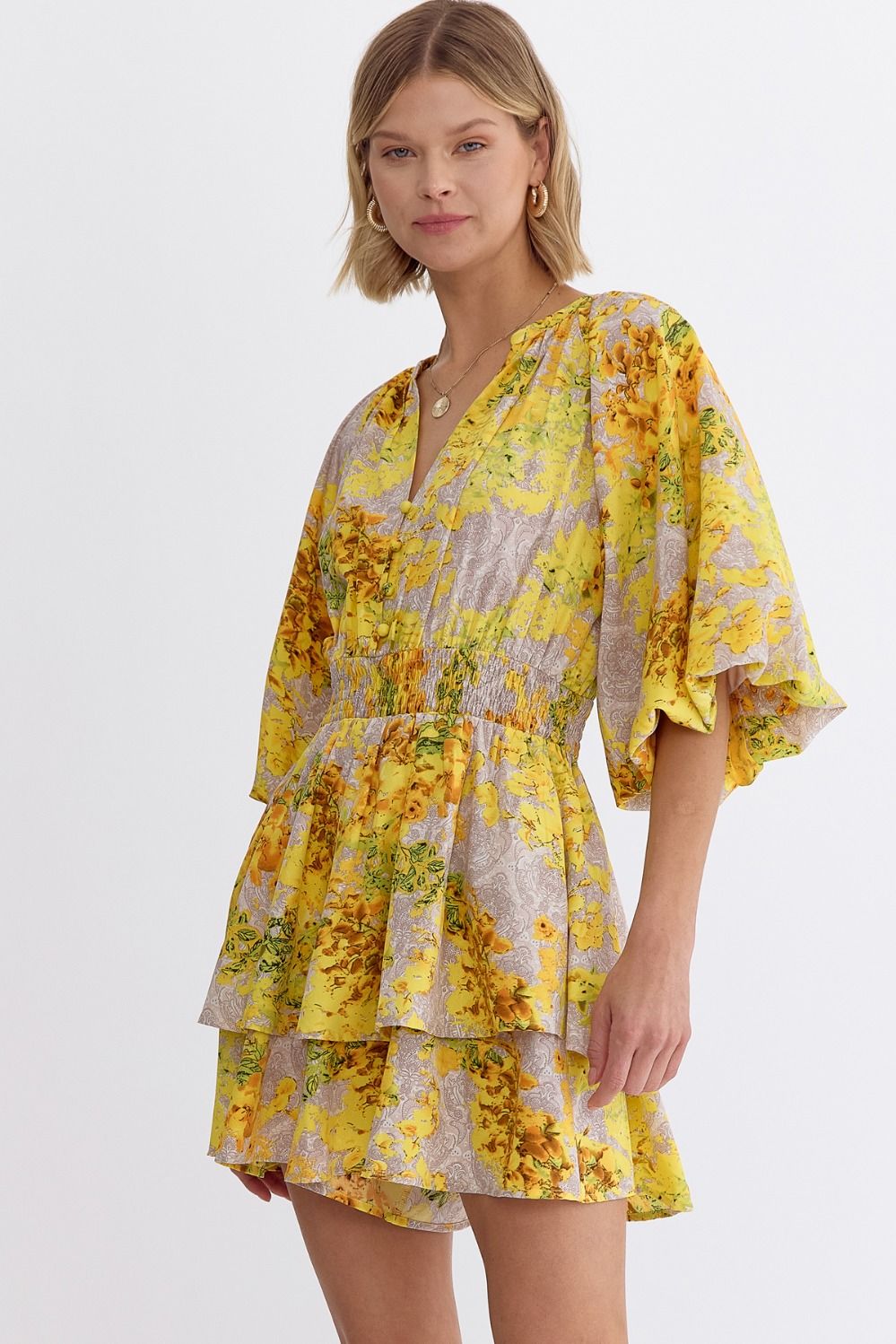 NEW - Entro Yellow Floral Print V-Neck Half Sleeve Mini Romper!