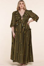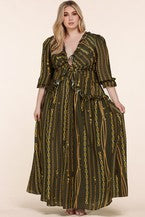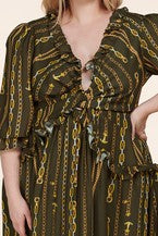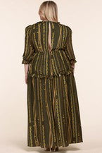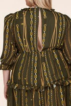 The Abbie ~ Olive Maxi Dress with Vertical Ornate Chain Print