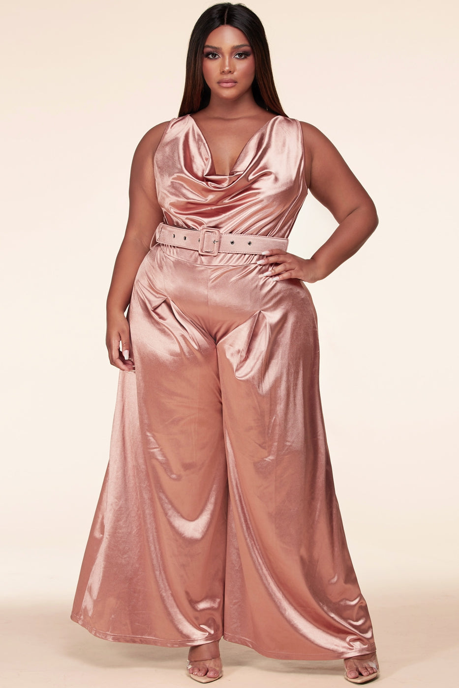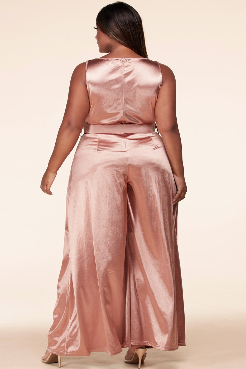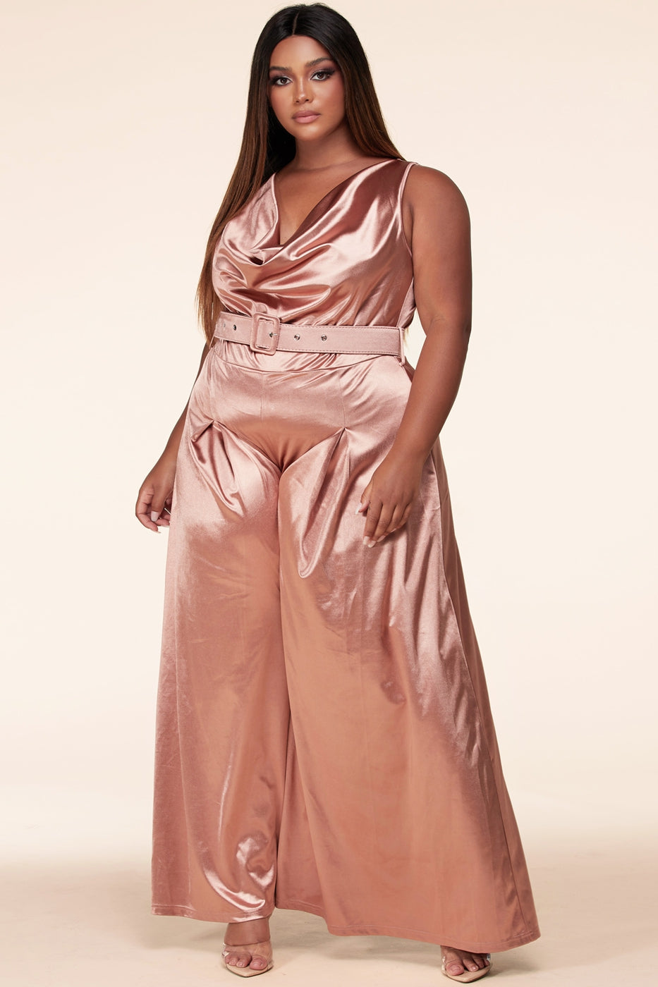 Latiste ~ Romantic & Flowy ~ CHAMPAGNE Satin Jumpsuit ~ CURVY!