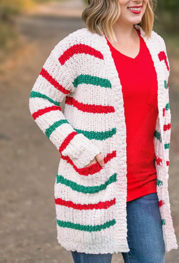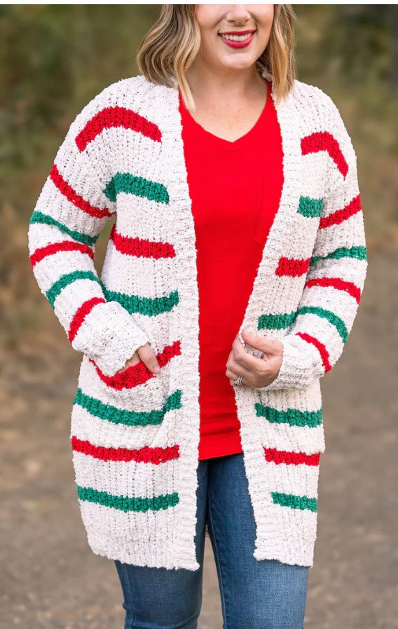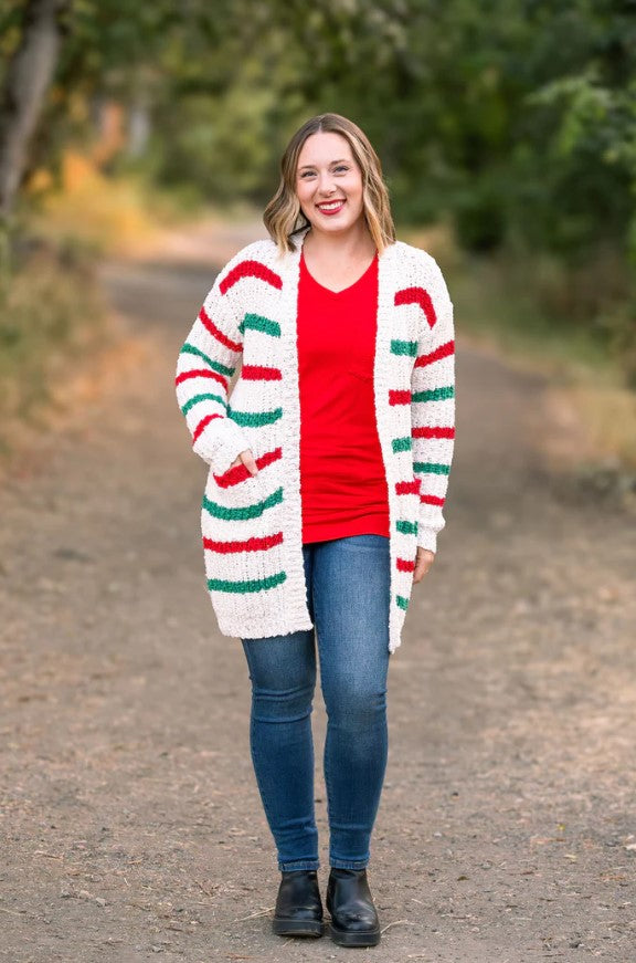 Michelle Mae ~ Snuggly Soft - Christmas Stripe Cardigan ~ Available in Size Small - 4XL!