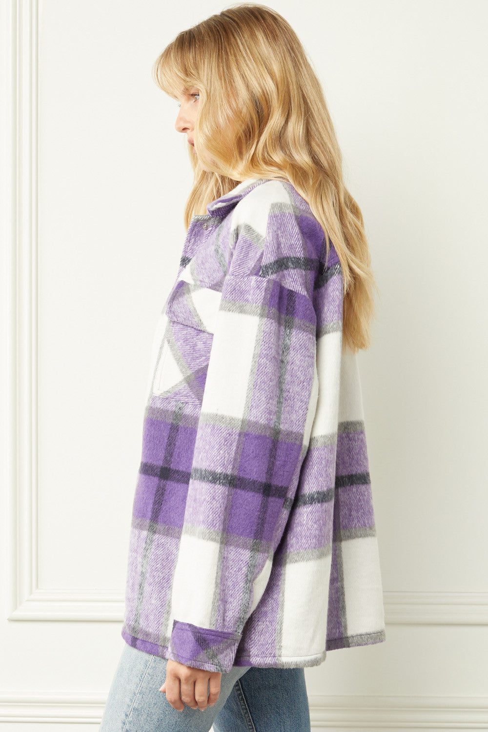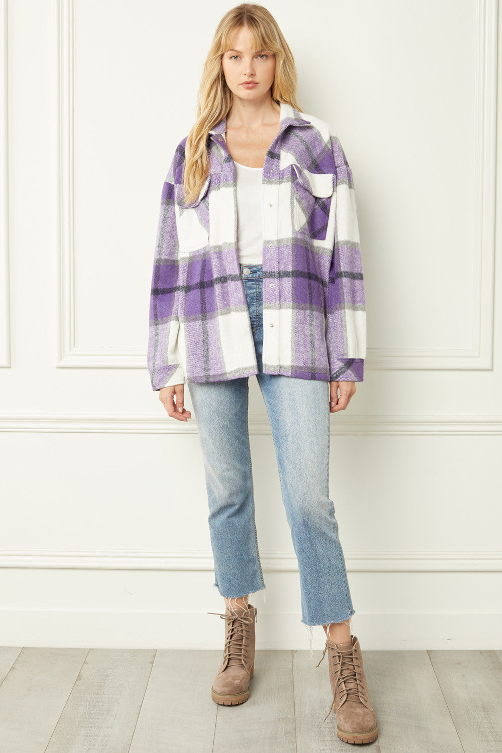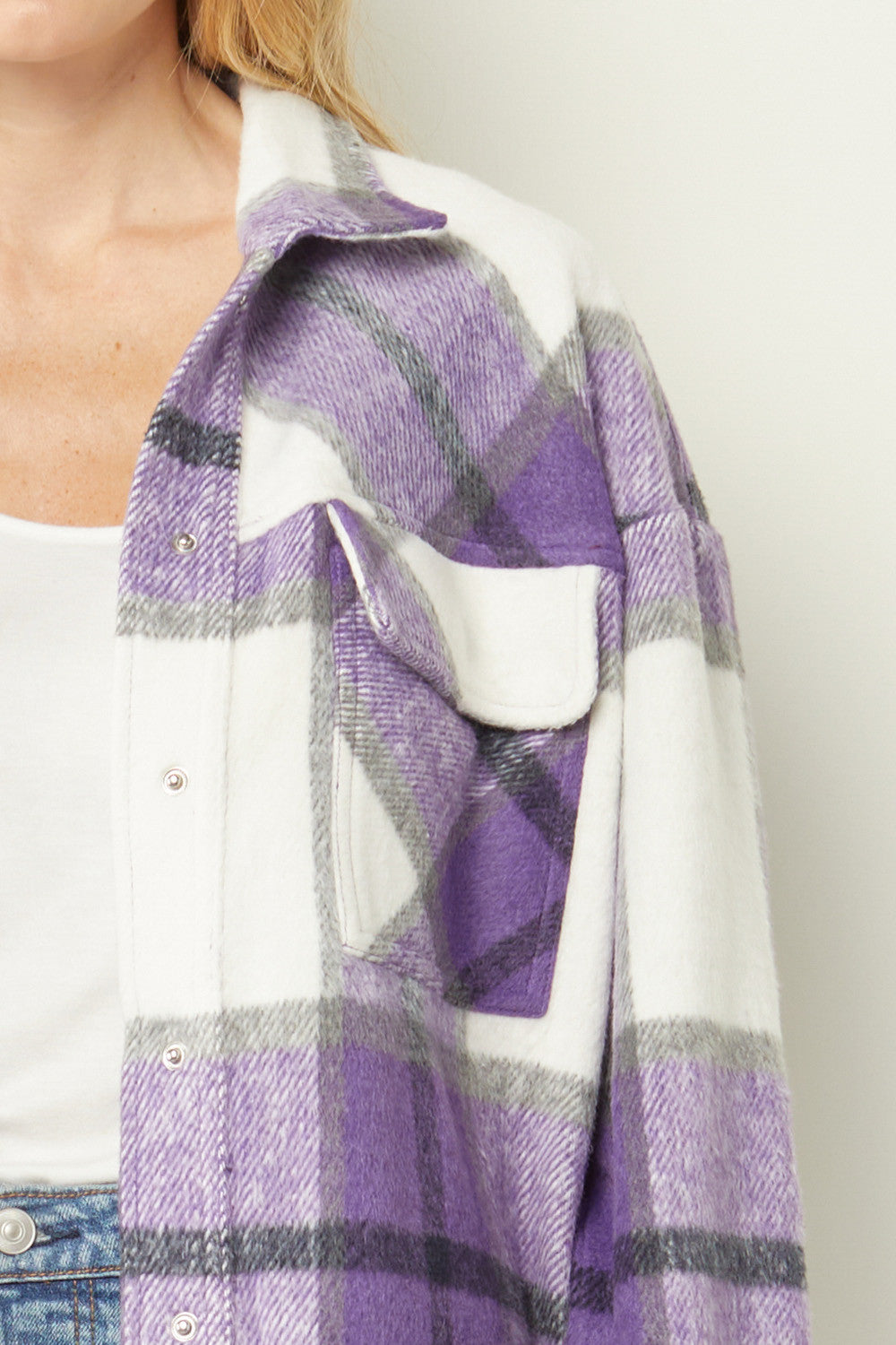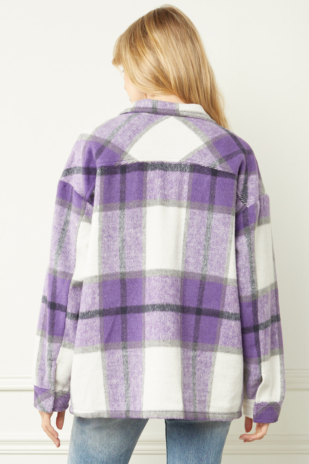 The Sherrie ~ Entro Purple/Black/White Plaid Brushed Shirt-Jacket ~ "Shacket"
