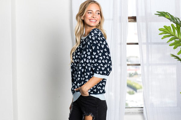 Blue Syeda Sweater with Hearts ~ LOVE in a Sweater ~ Curvy Available Too!