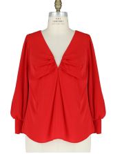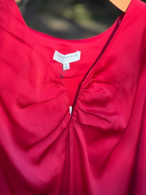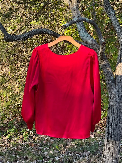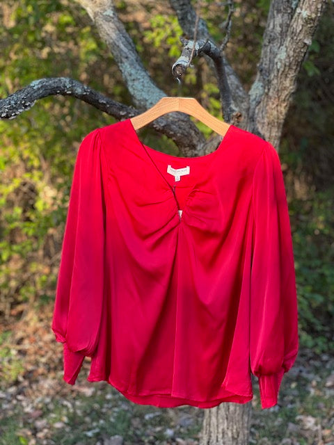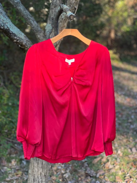 The Lola ~ Curvy ~ Skies Are Blue ~ Textured Satin Lipstick Red Long Sleeved Top